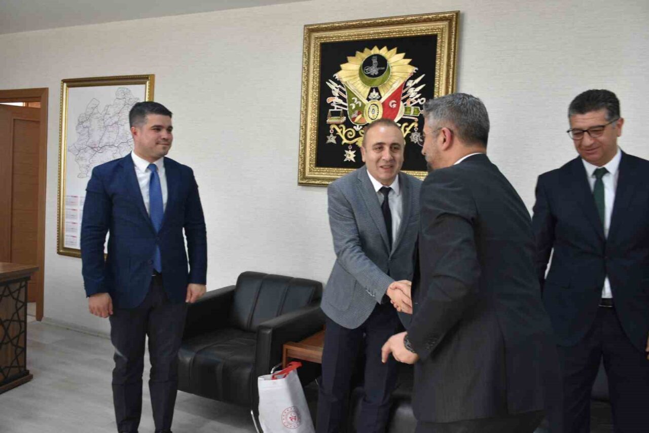 Gençlik Hizmetleri Müdürlüğü’ne atanan Metin Günay, Horasan İlçe Müdürü Muhammet Karakelle, Narman İlçe Müdürü Fetullah Söğüt, Tortum ilçe müdürlüğüne atanan Dursun Altunışık, Hınıs İlçe Müdürlüğüne atanan Mahmut Çağlayan, Pazaryolu İlçe Müdürlüğü’ne atanan Ömer Karslı, Uzundere İlçe Müdürlüğüne atanan Hikmet Palandöken, Tekman İlçe Müdürlüğüne atanan Fatih Arslan, Şenkaya İlçe Müdürlüğüne atanan Zafer Kavcı ile birlikte AK Parti İl Başkanı Av. İbrahim Küçükoğlu’na teşekkür ziyaretine giden GSİM İl Müdürü Levent Çakmur, bu süreçte kendilerine destek veren İl Başkanı Küçükdğlu ile AK Parti Erzurum Milletvekilleri Selami Altınok, Mehmet Emin Öz, Fatma Öncü ve Abdurrahim Fırat’a teşekkür etti. Spor Hizmetleri Müdürü Erdoğan Dönmez’in de hazır bulunduğu ziyarette. İl Başkanı Av. İbrahim Küçükoğlu’na milli takım forması hediye edildi.