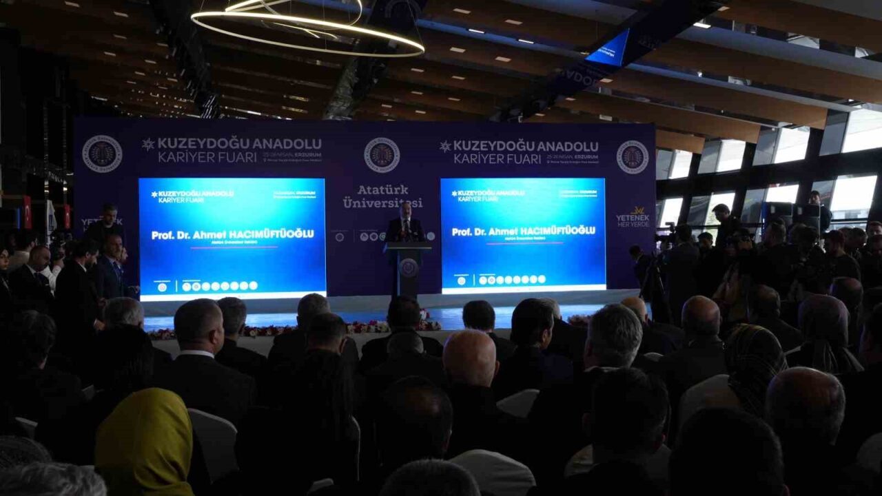“”Unutulmamalıdır ki, Türkiye Yüzyılı vizyonunun en önemli yapı taşları, bilgili, üretken ve idealist gençlerimizdir. İşte bu fuar, onların potansiyelini harekete geçirecek, yerli ve milli kalkınma hamlelerimizin temeline sağlam harçlar koyacaktır.” diyen Atatürk Üniversitesi Rektörü Prof. Dr. Ahmet Hacımüftüoğlu,”Bu anlamlı etkinliğin gerçekleşmesinde emeği geçen herkese gönülden teşekkür ediyor, öğrencilerimize ilham verici karşılaşmalar, sektör temsilcilerine ise nitelikli insan kaynağı ile buluşma fırsatı sunan verimli bir fuar diliyorum. Bu birliktelik, ülkemizin geleceğine duyduğumuz inancın en güçlü göstergesidir. 2025 yılında EİT Turizm Başkenti ve Avrupa Kış Sporları Başkenti olan bu kadim şehrimizde, bugünkü buluşmamızın heyecanı, Cumhurbaşkanı Yardımcımız Sayın Cevdet Yılmaz’ın ve Bakanlarımızın yarınki teşrifleriyle daha da artacaktır” şeklinde konuştu.