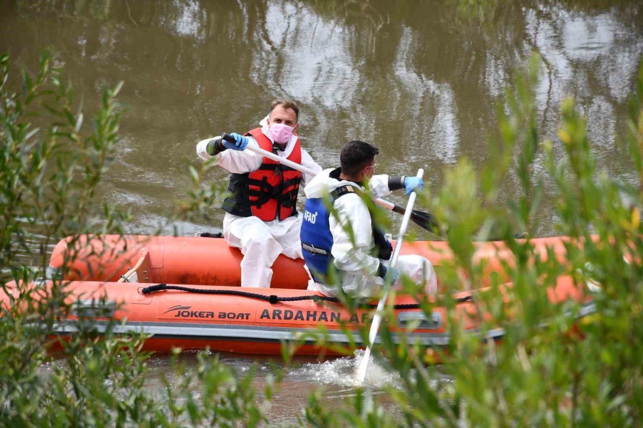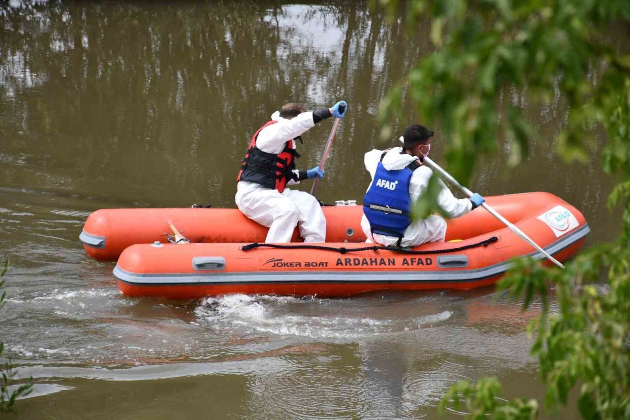 Ardahan’da Kura nehri kıyısında dolaşan vatandaşlar, nehirde yüzen ineğin cansız bedeni ile karşılaştı.