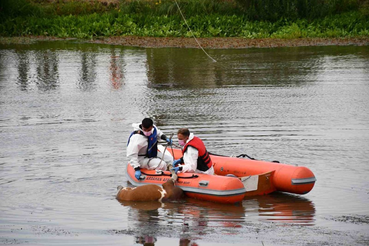 Ardahan ovasındaki merada otlandığı sırada Kura nehrine düşen inek suyun akıntısı ile birlikte sürüklenmeye başladı. Vatandaşların fark ettiği inek bir müddet sürüklendikten sonra suda boğularak telef oldu. Vatandaşların ihbarı üzerine bölgeye AFAD ve Belediye ekipleri yönlendirildi.