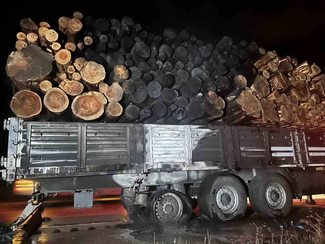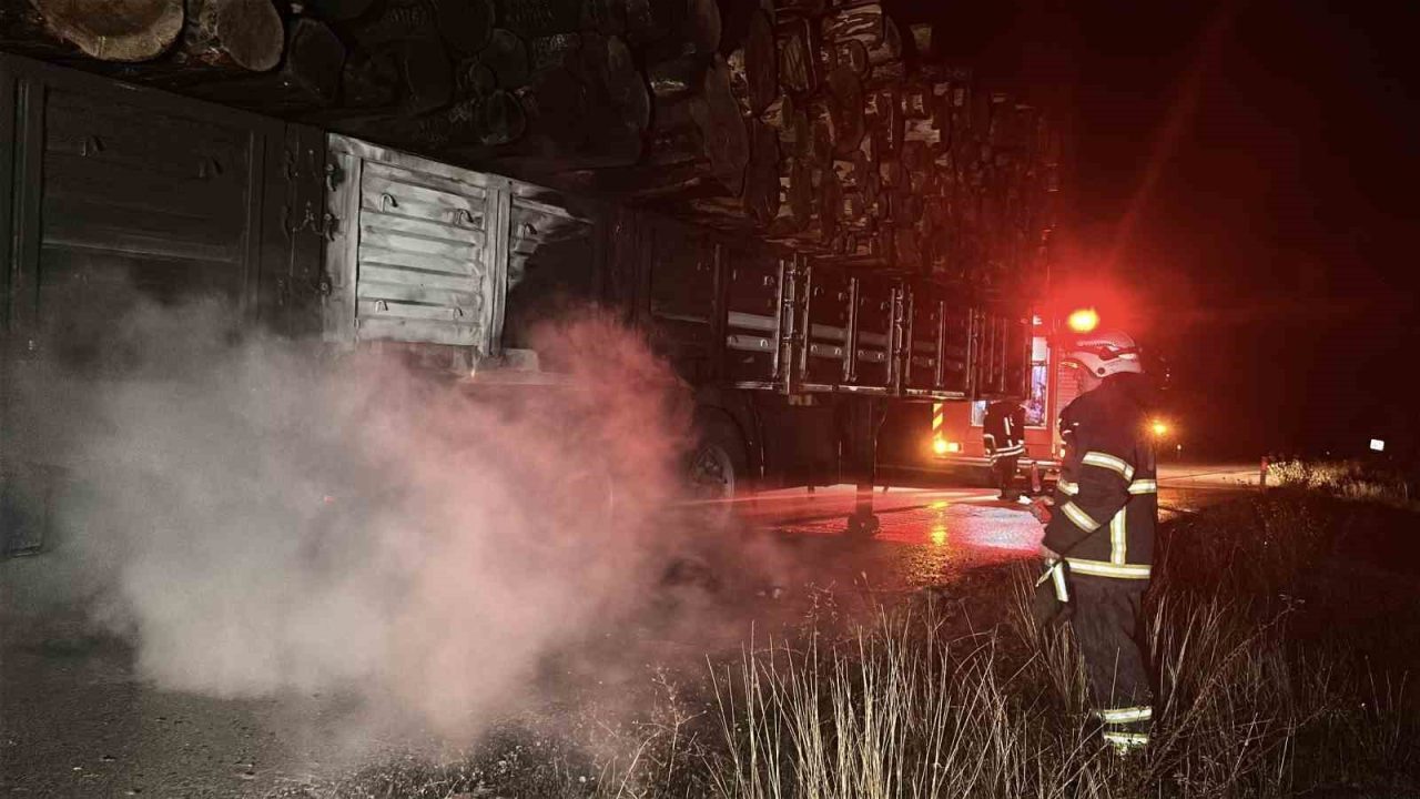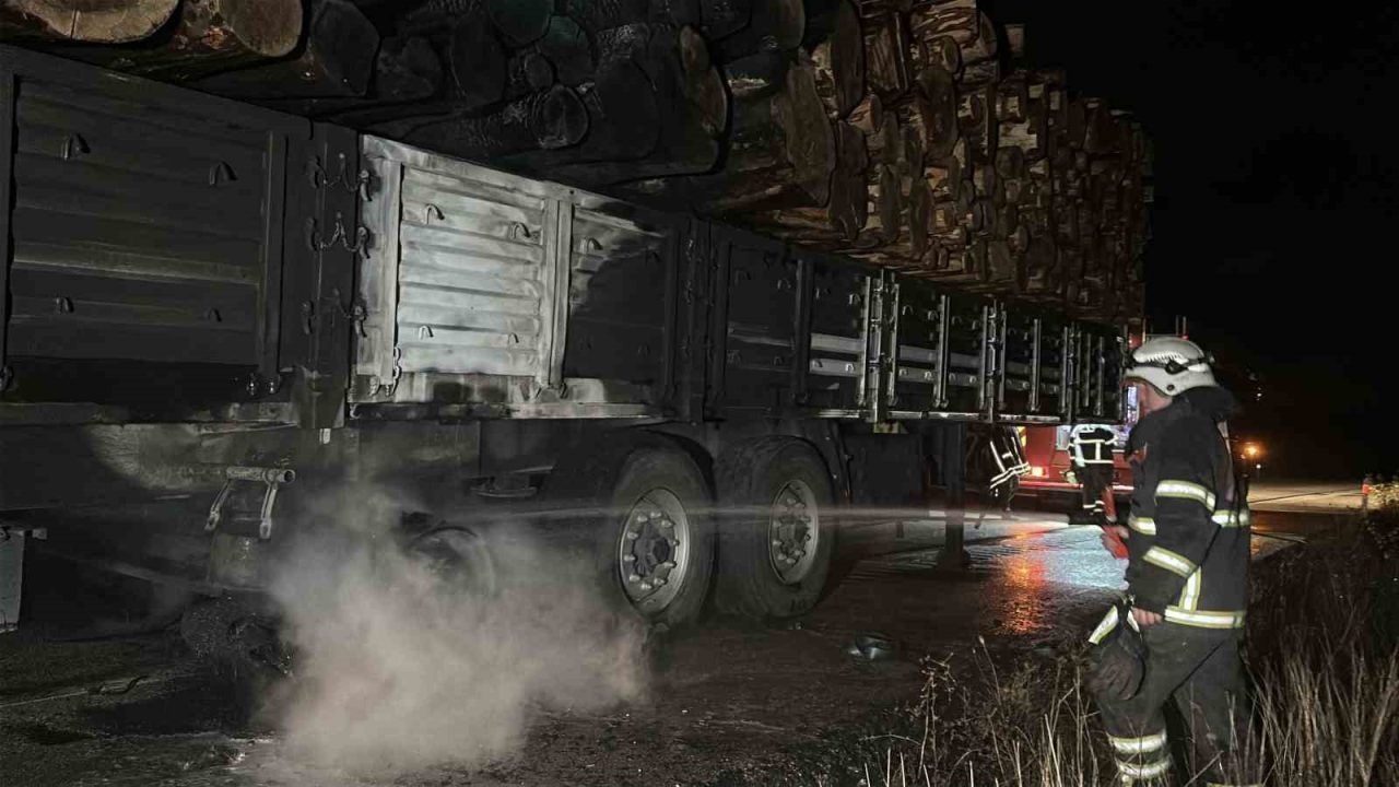 Olay, Ankara-Kastamonu karayolu Kadı Dağı mevkiinde meydana geldi. Edinilen bilgiye göre, Çankırı’dan Kastamonu’da bulunan bir fabrikaya tomruk taşıyan İ.Ş. idaresindeki 37 AAY 716 plakalı tırın dorsesinin lastiklerinden yangın çıktı. Durumu fark eden sürücü, tırı yol kenarında durdurarak 112 Acil Çağrı Merkezini aradı. İhbar üzerine olay yerine gelen itfaiye ekiplerinin müdahalesiyle, tomruklara da sıçrayan yangın söndürüldü.
