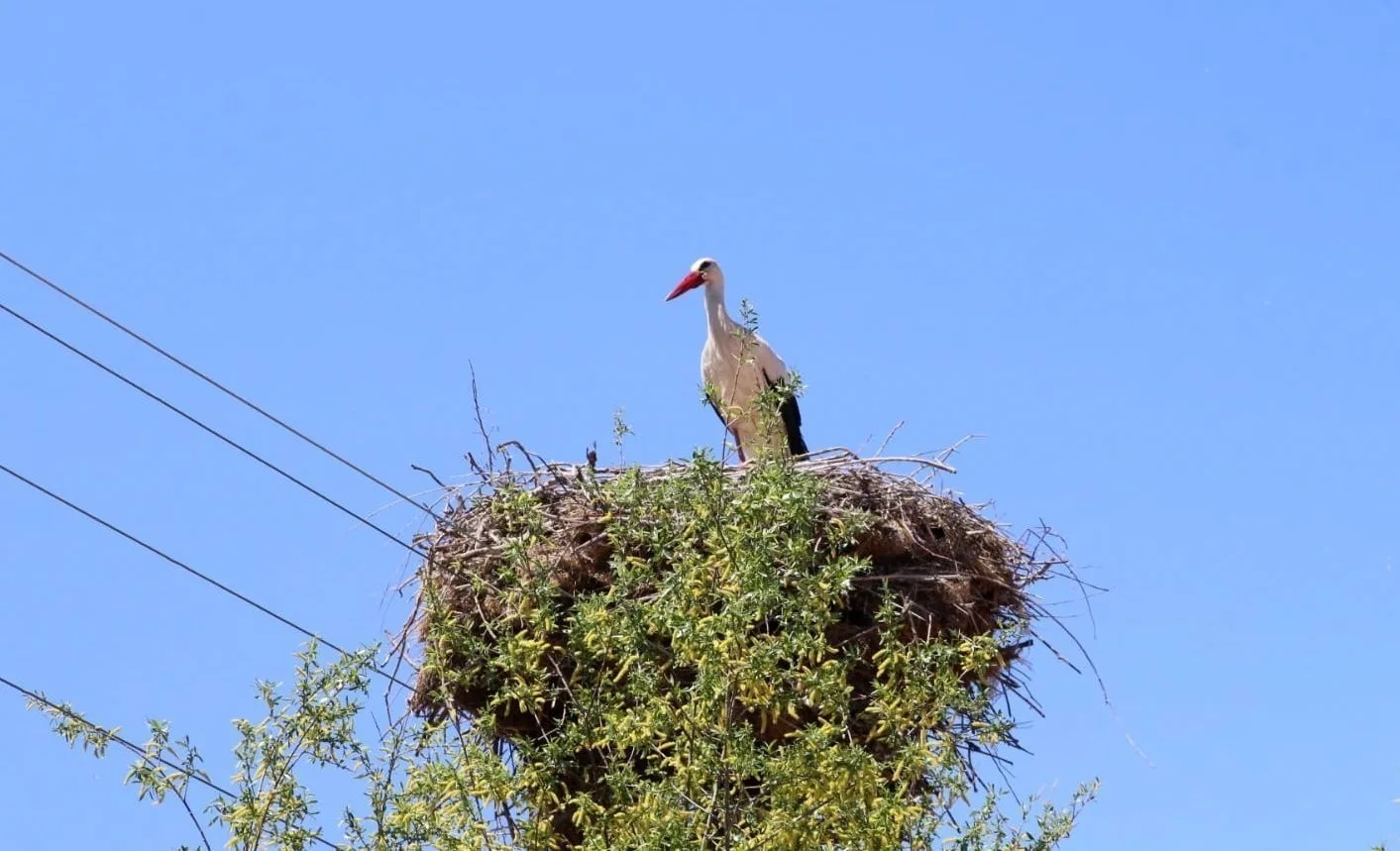 ELEKTRİK DİREĞİNİN TEPESİNDEKİ YUVA, LEYLEK AİLESİNE 22 YILDIR EV SAHİPLİĞİ YAPIYOR