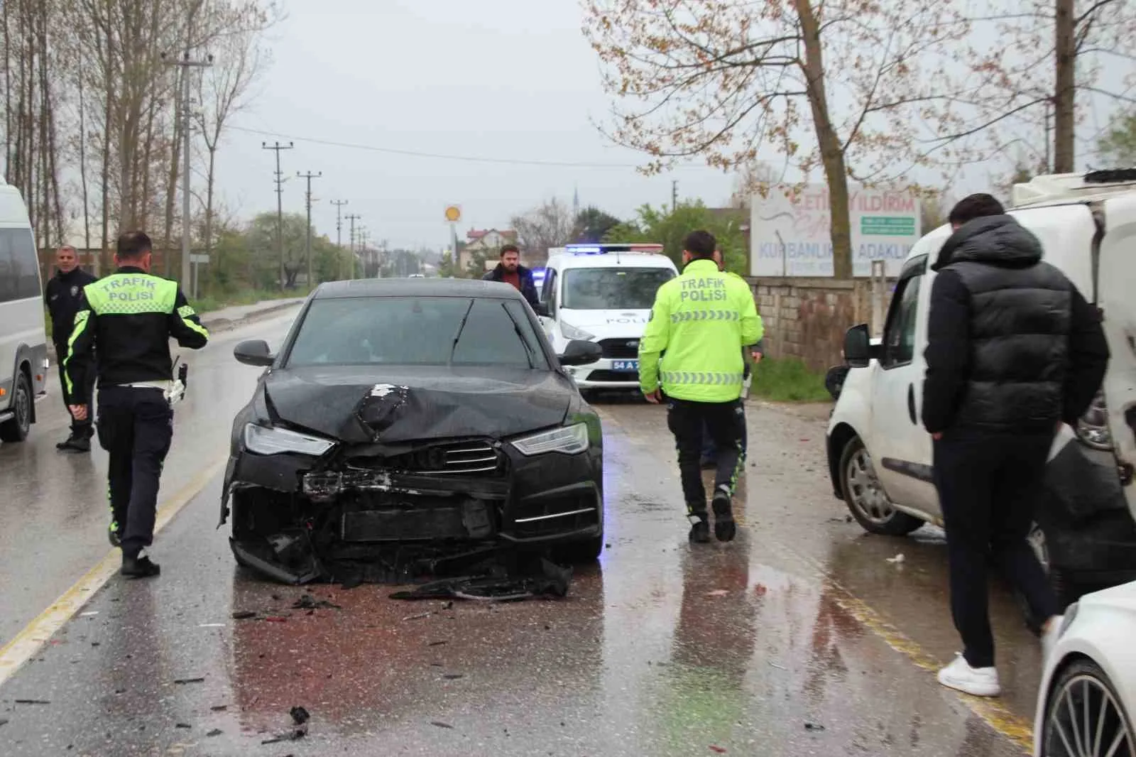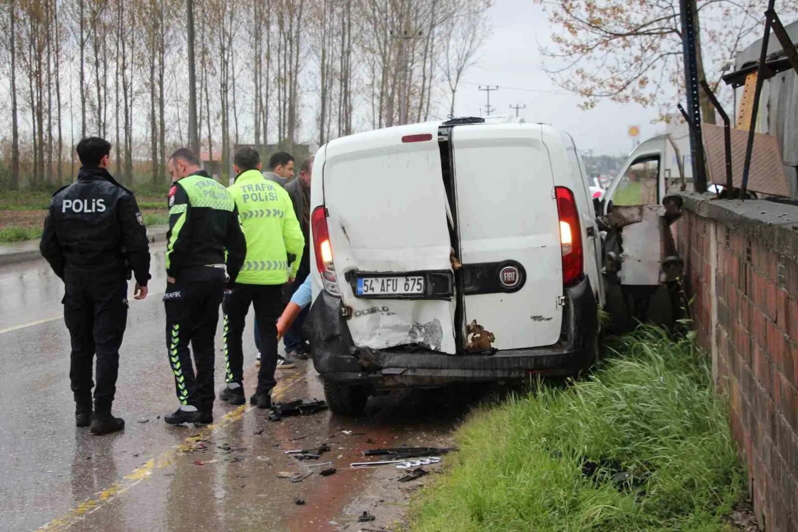 Kaza, Batakköy Caddesi üzerinde akşam saatlerinde meydana geldi. Edinilen bilgiye göre, Ç.Y. (53) kontrolündeki 54 AFU 675 plakalı Fiat marka hafif ticari araca, aynı istikamette ilerleyen E.G. (32) idaresindeki 54 TC 312 plakalı Audi marka otomobil çarptı. Çarpışmanın etkisi ile savrulan araçlar ilk olarak yol kenarındaki çöp kovası ve ardından iş yerinin duvarına çarparak durabildi. Durumun 112 Acil Çağrı Merkezi’ne haber verilmesi üzerine bölgeye sağlık ve polis ekipleri sevk edildi. Kazada yaralanan sürücüler Ç.Y. ve E.G., ambulansla hastaneye kaldırılarak tedavi altına alındı. Kaza sebebi ile bölgede bir süre aksayan trafik araçların yoldan kaldırılması ile normal seyrine döndü.