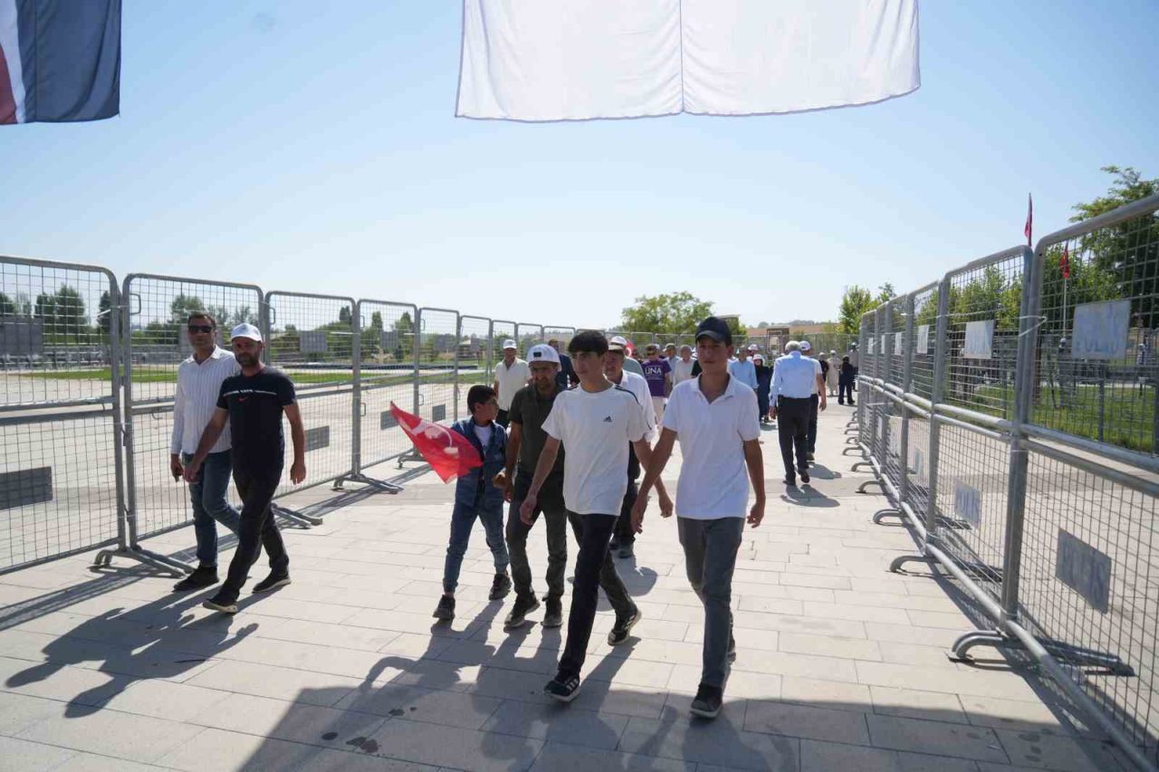 Muş’un Malazgirt ilçesinde binlerce vatandaş, Malazgirt Zaferi’nin 954’üncü yıl dönümü etkinlikleri kapsamında tören alanına gelecek olan Cumhurbaşkanı Recep Tayyip Erdoğan’ı bekliyor.