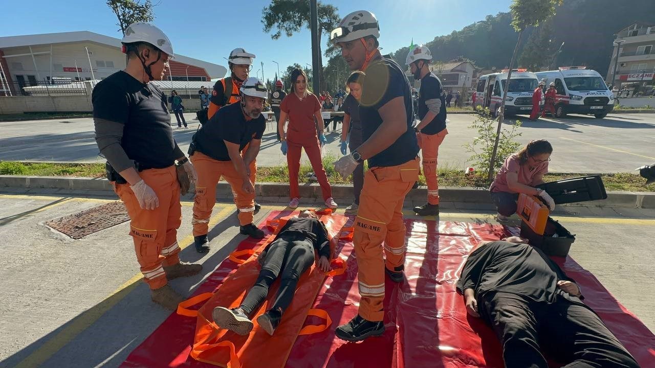 Tatbikatta Hastane Afet ve Acil Planlama (HAP) ekibinin yanı sıra Marmaris Orman İşletme Müdürlüğü, İlçe jandarma, İlçe emniyet, İtfaiye, AFAD, AKUT, MAGAME ve UMKE ekipleri yer aldı. Tatbikat senaryosuna göre Datça açıklarında meydana gelen depremin ardından Marmaris Devlet Hastanesi’nin bodrum katında yangın çıktı. Depremle eş zamanlı olarak hastane içinde kısa devre kaynaklı yangın, KBRN düzeyinde kimyasal sızıntı ve kimyasal maddeye maruz kalan vatandaşların acil tedavi süreçleri canlandırıldı. Aynı anda hastanenin poliklinik bölümünde ikinci bir yangın senaryosu da işlendi. Yangınlara Marmaris Orman İşletme Müdürlüğü ekipleri ve Muğla Büyükşehir Belediyesi İtfaiye ekipleri müdahale ederek söndürürlerken arama kurtarma ekipleri, sağlık ve ilk yardım ekipleri de yaralıları tahliye ederek aciliyet durumlarına göre belirlenen sarı, yeşil, kırmızı ve siyah alanlara getirip ilk müdahalelerini yaptılar.