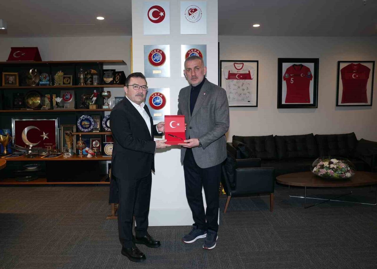 Buluşmada Türkiye Futbol Federasyonu Başkanı İbrahim Ethem Hacıosmanoğlu, AK Parti Erzurum Milletvekili Selami Altınok’a Milli Takım forması hediye etti.