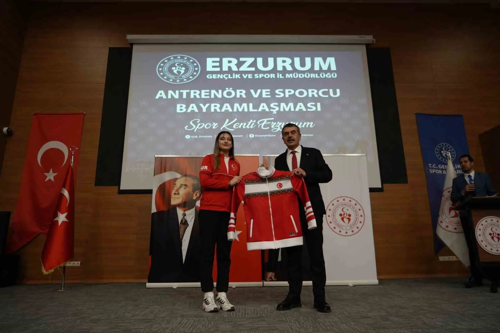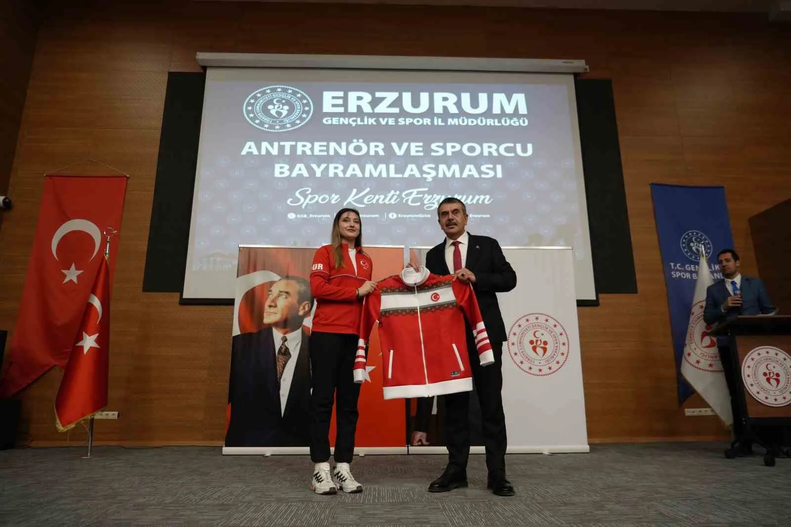 Daha sonra Spor Eğitim Merkezi’ne geçen Milli Eğitim Bakanı Yusuf Tekin, burada antrenör ve sporcularla bayramlaştı. Bakan Tekin, antrenör ve sporculara hitap ederken, Türkiye’nin son 20 yılda birçok alanda olduğu gibi sportif eğitim anlamında da, sportif tesisleşme anlamında da çağ atladığını ifade ederek, “Erzurum’un özellikle kış sporlarıyla ilgili sahip olduğu tesislerin dünyada birçok ülkede örnek gösterilecek evsafta olduğunu hepimiz biliyoruz. Bu sadece Erzurum için değil, Türkiye’deki her ilimizde çok yoğun bir sportif tesisleşme süreci yaşadık. Bunda en çok Sayın Cumhurbaşkanımızın sportif bir geçmişten gelmesi ve sportif eğitimi önemsemesi var. Sadece tesisleşme değil aynı zamanda lisanslı sporcu sayısının ülke nüfusuna oranı anlamında da çok ciddi mesafeler kat ettik. Emeği geçen herkese teşekkür ediyoruz. Ama bütün bunlara rağmen eksik olduğumuz alanlar var. Eksik olduğumuz konular var. Bunlardan en temeli sportif eğitimin, akademik eğitimle beraber yürütebileceğimiz mekanizmalar konusunda arzu ettiğimiz noktada değiliz. Bir de bununla bağlantılı bir başka sorunumuz da sportif yeteneklerin erken yaşlarda tespit edilip hem akademik eğitimlerin hem de sportif eğitimlerinin bu yetenek doğrultusunda sürdürülmesi konusunda da arzu ettiğimiz düzeyde değiliz” dedi.