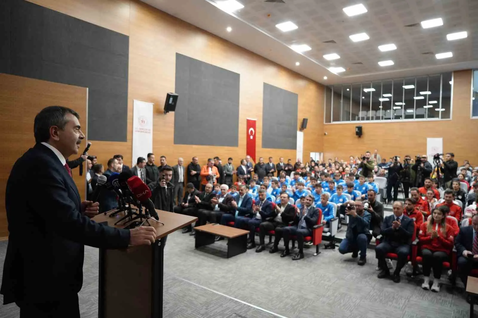 2016-2017 eğitim öğretim yılında bu konularda tohumları atmaya başladıklarını hatırlatan Bakan Tekin, “Yani sportif yeteneklerin tespit edilip devam ettirilmesi anlamında akademik eğitimle beraber onların yürütülmesiyle ilgili süreçleri başlatmıştık. Aynı şekilde Milli Eğitim Bakanlığı olarak Gençlik ve Spor Bakanlığı’yla bir protokol yapıp okullarımızda ilkokul düzeyinde ve ortaokul düzeyinde sportif tarama testleri organize etmeye başlamıştık. Orada da mesafe kat ettik. Fakat sportif eğitimle akademik eğitimi paralel yürütecek eğitim kurumları oluşturmak da biraz istediğimiz gibi değildik. 2014 yılında başka bir şey yaptık. Proje okullar kurduk, sportif eğitimle beraber akademik eğitimde yürütebileceği çocuklarımızın branş bazlı tematik spor liseleri, spor okulları kurmaya başladık. Türkiye voleybol federasyonuyla beraber yaptığımız voleybol kız lisesi bunun bir örneği. Hemen akabinde o zamanki Türkiye Futbol Milli Takımı direktörü Teknik sorumlusu Fatih Terim Hoca’yla beraber Riva’da bir futbol lisesi açtık. Bütün federasyonlarla Milli Eğitim Bakanlığı olarak oturduk sportif eğitimle akademik eğitimi beraber yürütebileceğimiz okullar açabilir miyiz? Bu süreci daha sağlıklı hale getirebilir miyiz? Daha küçük yaşlardan itibaren bunun başlangıcını yapabilir miyiz diye kafa yormaya başladık. Birçok federasyonla bu anlamda iş birliği yaptık. Arada biraz duraksadı bu süreç. 2023 Haziran ayında tekrar bakan olarak göreve başladıktan sonra bu süreci yeniden hızlandırdık. Birkaç ay İstanbul’da Basketbol Federasyonuyla ortak basketbol gelişim merkezi yani bir anlamda basketbol lisesi açtık. Bunu devam ettiriyoruz. Yine birkaç ay önce Gençlik ve Spor Bakanlığımızın bilgisi dâhilinde Amatör Spor Federasyonlarının ve özellikle olimpik branşları federasyon başkanlarını bakanlığımızda ağırladık. Olimpik branşlarda sportif eğitimle beraber akademik eğitim veren temel eğitim ve orta öğretim kurumları açabiliriz. Birlikte bu yolculuğu yeniden başlatalım dedik. Çalışmalarımız devam ediyor federasyonlarla” şeklinde konuştu.