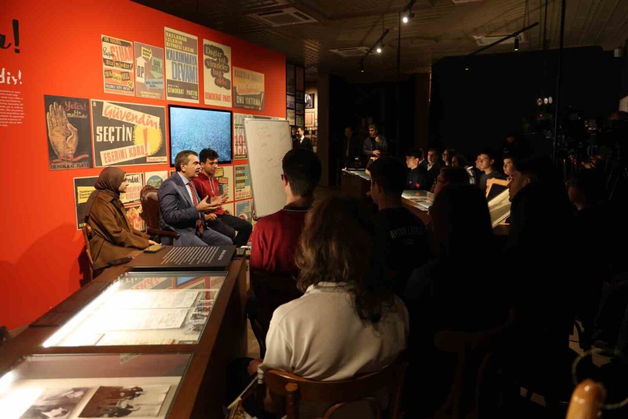 BİR DİZİ PROGRAM VE ETKİNLİK İÇİN AYDIN’A GELEN MİLLİ EĞİTİM BAKANI YUSUF TEKİN, ADNAN MENDERES DEMOKRASİ MÜZESİ’NDE DÜZENLENEN ÖZEL PROGRAMDA AYDIN’DAKİ BİR GRUP ÖĞRENCİYE ‘DEMOKRASİ VE İNSAN’ KONULU DERS VERDİ.