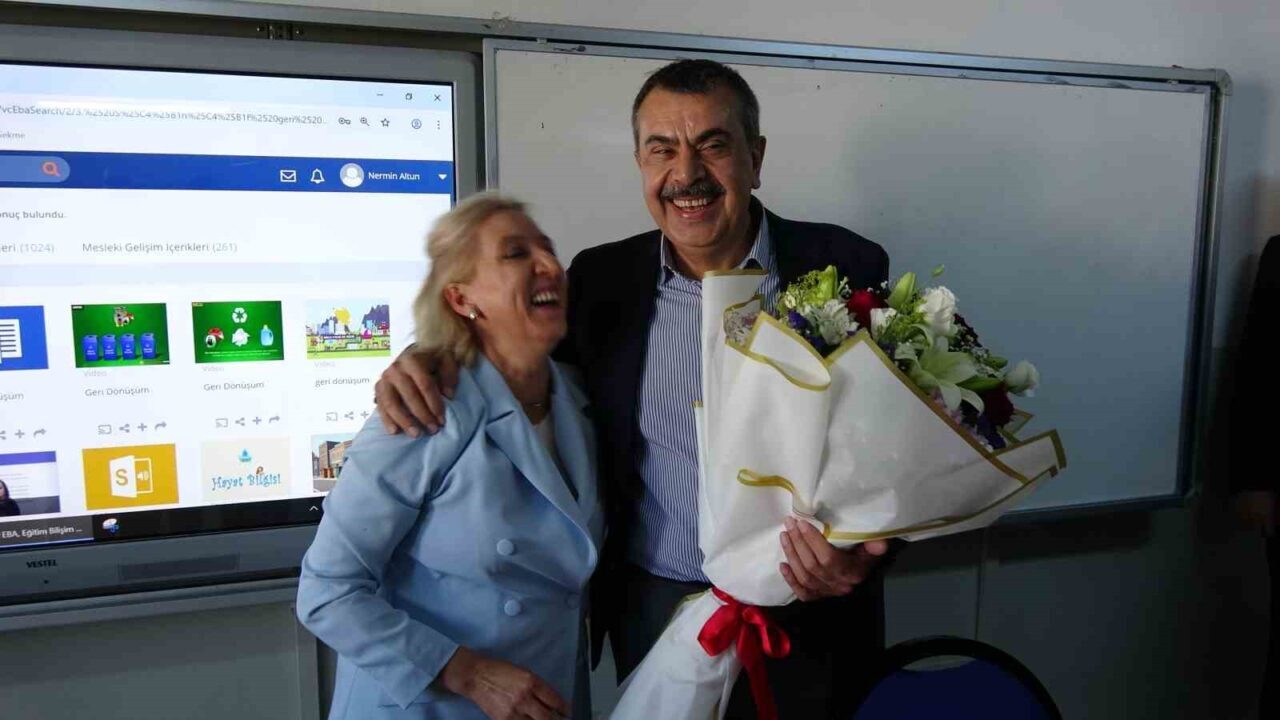 Meslek hayatında böyle bir kutlamayı ilk kez yaşadığını ifade eden Öğretmen Nermin Altun, “Bakanımıza çok teşekkür ediyorum. Sürpriz bir kutlama oldu. Çok mutlu oldum” diye konuştu.