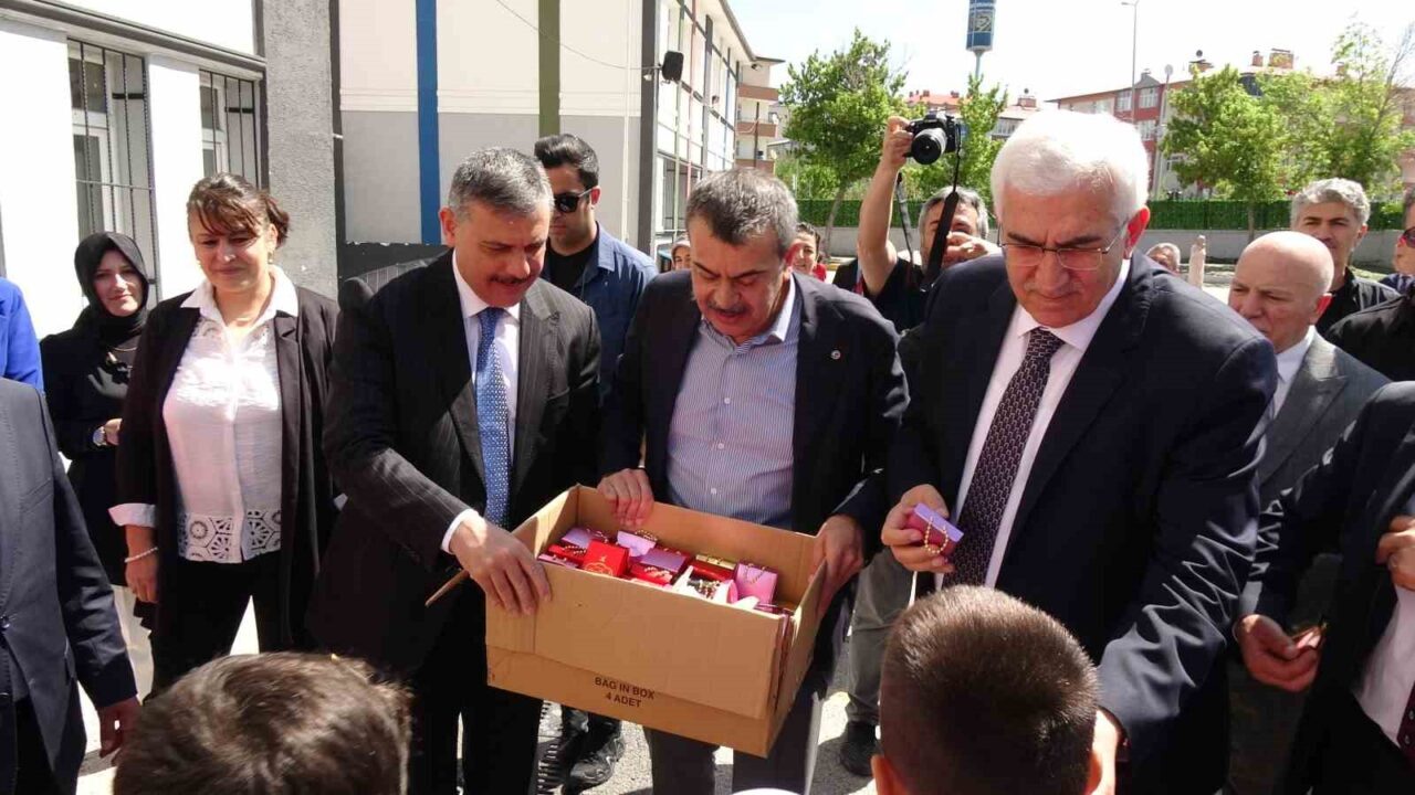 Beraberinde Erzurum Valisi Mustafa Çiftçi, Erzurum Milletvekilleri Fatma Öncü, Mehmet Emin Öz, Büyükşehir Belediye Başkanı Mehmet Sekmen, AK Parti İl Başkanı İbrahim Küçükoğlu ve İl Milli Eğitim Müdürü Yakup Yıldız ile birlikte okulu ziyaret eden Bakan Tekin öğrencilere bayram şekeri dağıttı.