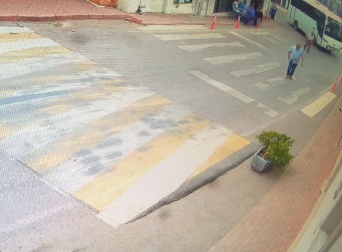Kaza anı güvenlik kamerasına yansırken görüntülerde minibüsün M.M.’ye çarptığı ve altına aldığı görülüyor.
