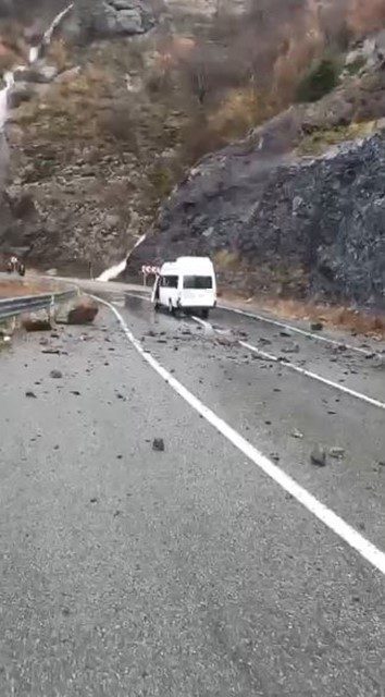 Artvin-Borçka kara yolunda seyir halindeki minibüsün üzerine yamaçtan kopan kaya düşmesi sonucu araç kullanılamaz hale gelirken, kazada can kaybı ya da yaralanma yaşanmadı.