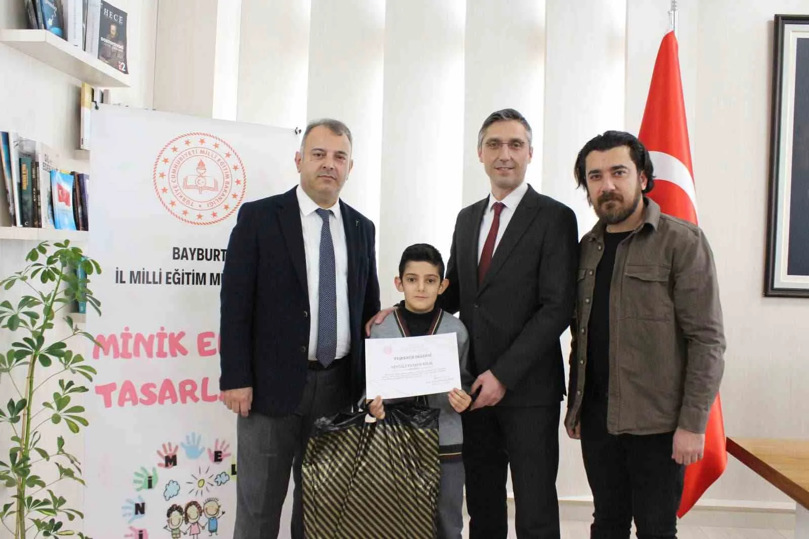 İlkokul seviyesinde düzenlenen ‘Minik Eller Tasarlıyor’ yarışması çerçevesinde öğrenciler, ‘Kendi Müzik Aletimi Yapıyorum’ temasıyla el becerilerini ve hayal güçlerini birleştirerek müzik aleti tasarımı yaptılar. Yarışmada dereceye giren öğrenciler, ödüllerini İl Milli Eğitim Müdürü Ömer Faruk Kahraman’ın makamında aldı.