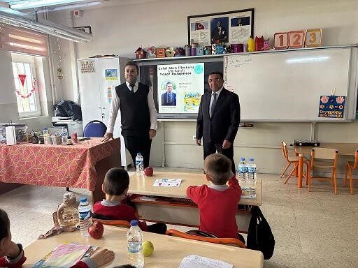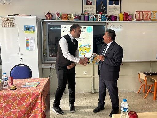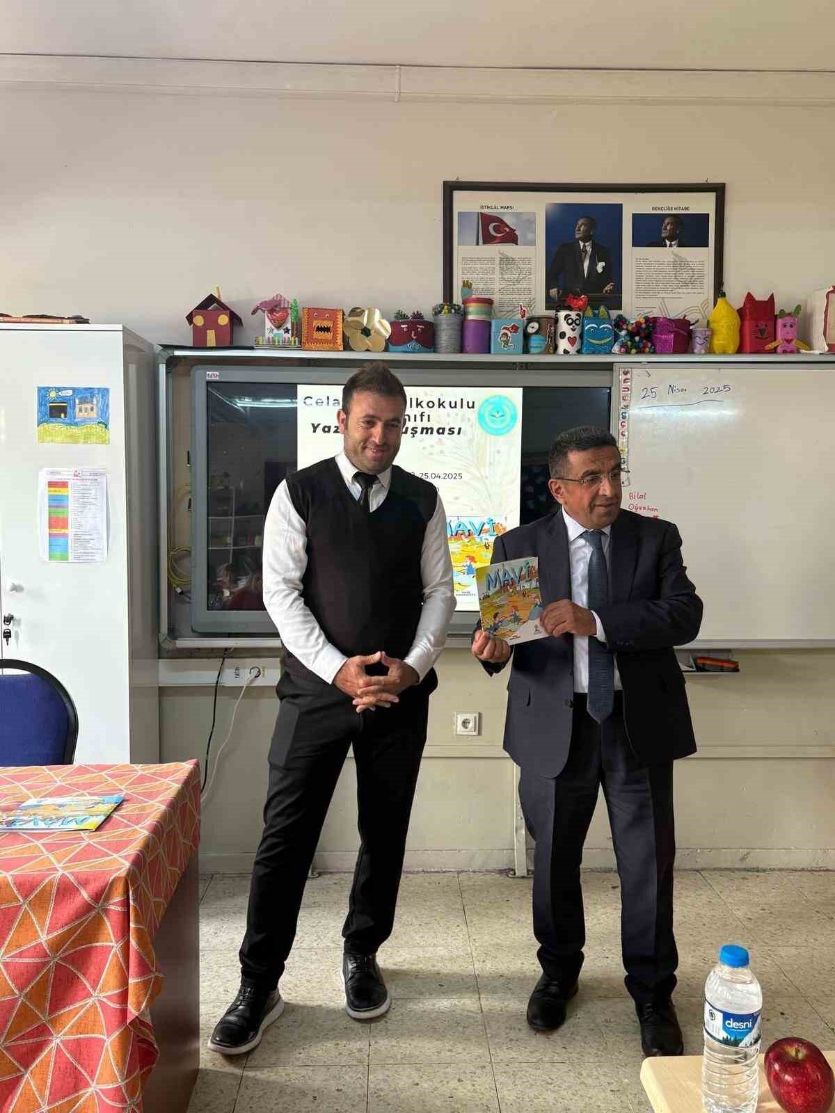 ‘Mavi’ adlı öykü kitabının yazarı Erhan Köçer, Celal Akın İlkokulu