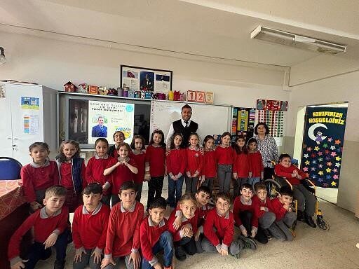 ‘Mavi’ adlı öykü kitabının yazarı Celal Akın İlkokulu 1/D sınıfı öğrencilerinin ve sınıf öğretmeni Canan Bağır Ulukurt’un konuğu oldu. Minik öğrenciler için ‘Mavi’ adlı öykü kitabını imzalayan Yazar Erhan Köçer, minik yüreklerle unutulmaz anlar yaşarken, öykü kitabında çocukları mavi yolculuğa çıkararak suyun öneminden bahsetti. Yazar Erhan Köçer’in 1/D sınıfı öğrencileriyle gerçekleştirdiği söyleşi ve kitap imza törenine Celal Akın İlkokulu Müdürü Orhan Çakıcı ile 1/D Sınıf Öğretmeni Canan Bağır Ulukurt da yalnız bırakmadı.