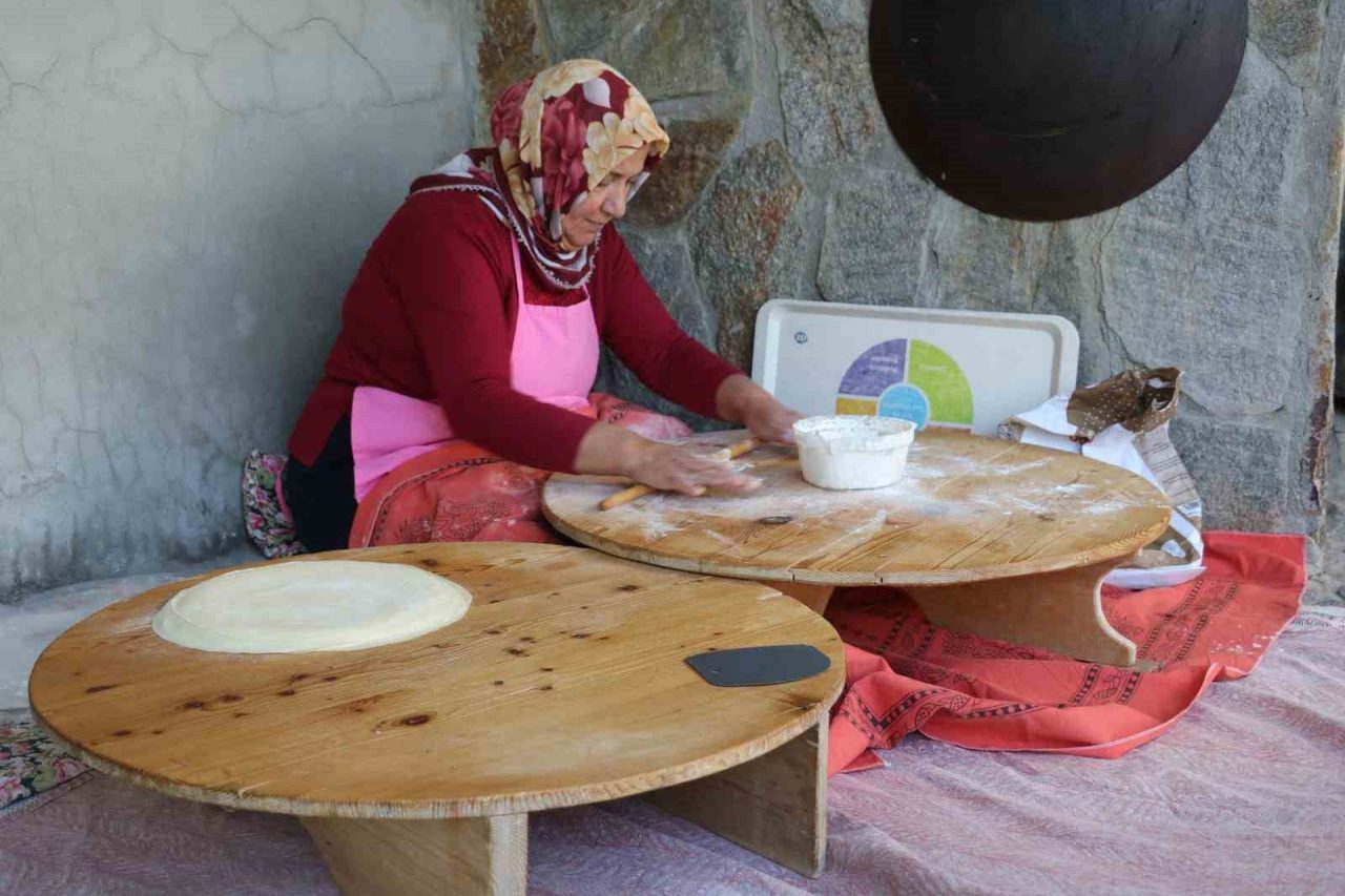 Minik misafirlere yapımını anlatan Güler Baydaroğlu, “Öncelikle pekmezli yufkamızın hamurunu açıyoruz. Yumurta koyuyoruz, sütümüz var, ayrıca sırlı olan bazı bir şeyler daha var. Bunları şimdi söyleyemiyorum. Valimizin talimatları var ürün Erzincan’ımızın ürünü olsun diye inşallah coğrafi işaret alacağız. İçerisinde ayrıca sevgi var, anne el emeği var. Birazdan sizlere ikram edeceğiz” afiyet olsun” dedi.