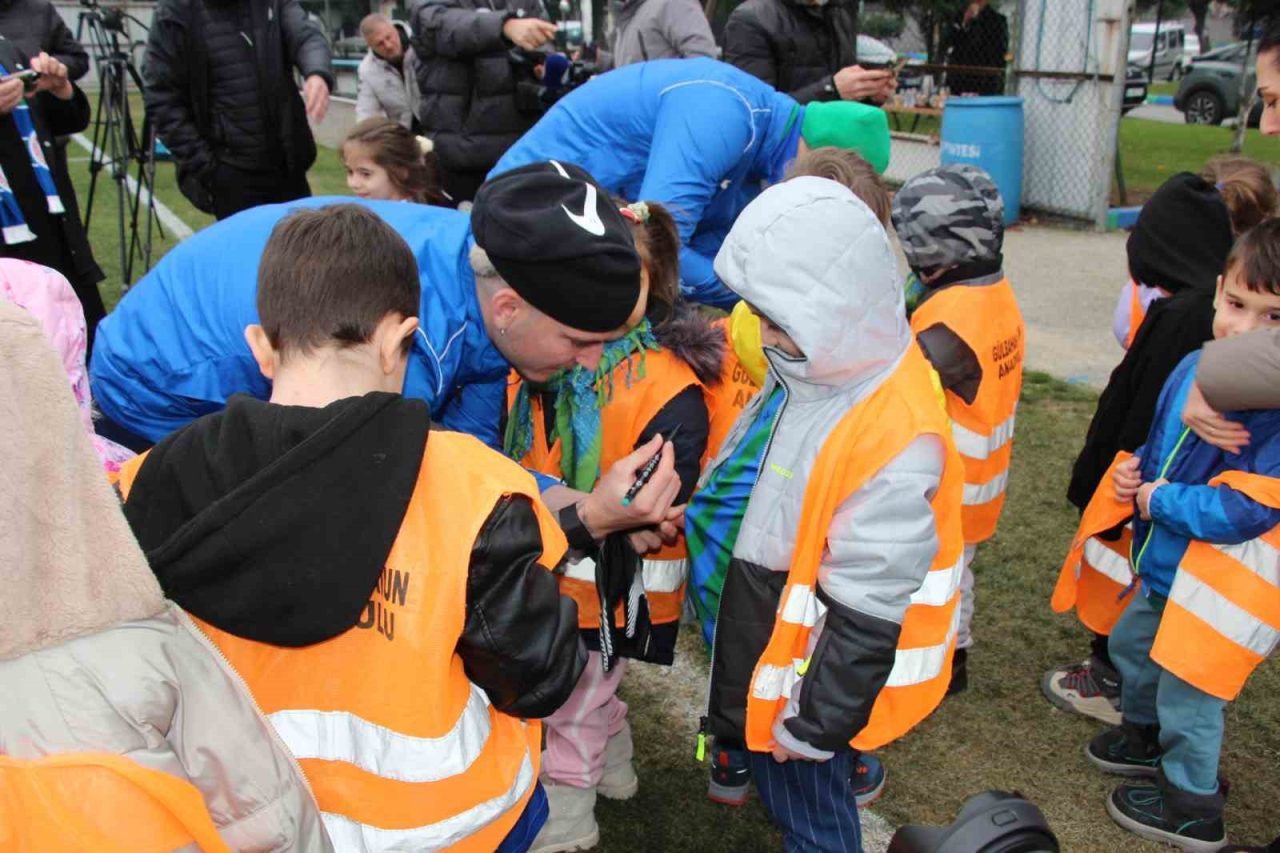 Ziyaret sırasında sahaya çıkan Çaykur Rizesporlu futbolcular da, minik taraftarları kırmadı. Futbolcular, çocukların formalarını tek tek imzalayarak onlara büyük sevinç yaşattı. Miniklerin futbolcularla kurduğu sıcak iletişim, renkli görüntüleri ortaya çıkardı.