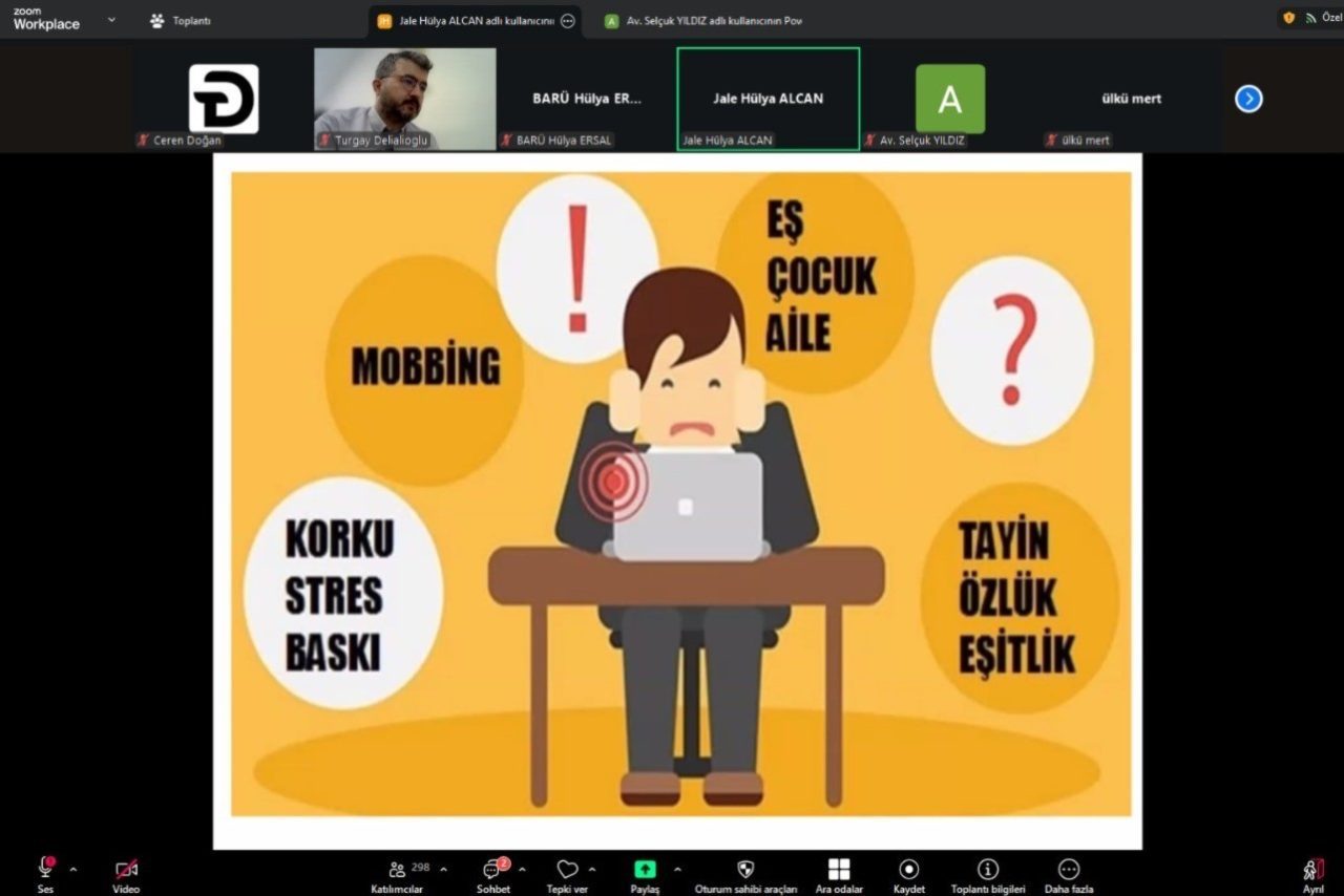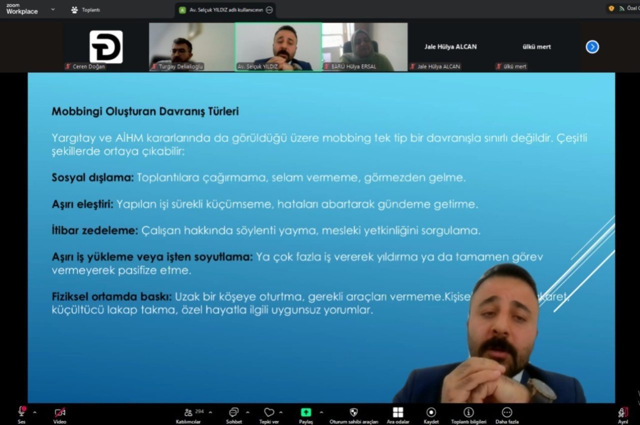 Bartın Üniversitesi Personel Daire Başkanlığı tarafından düzenlenen çevrim içi eğitim programında, iş yaşamında çalışanların karşılaşabileceği en önemli sorunlardan biri olan mobbing konusu tüm boyutlarıyla ele alındı.