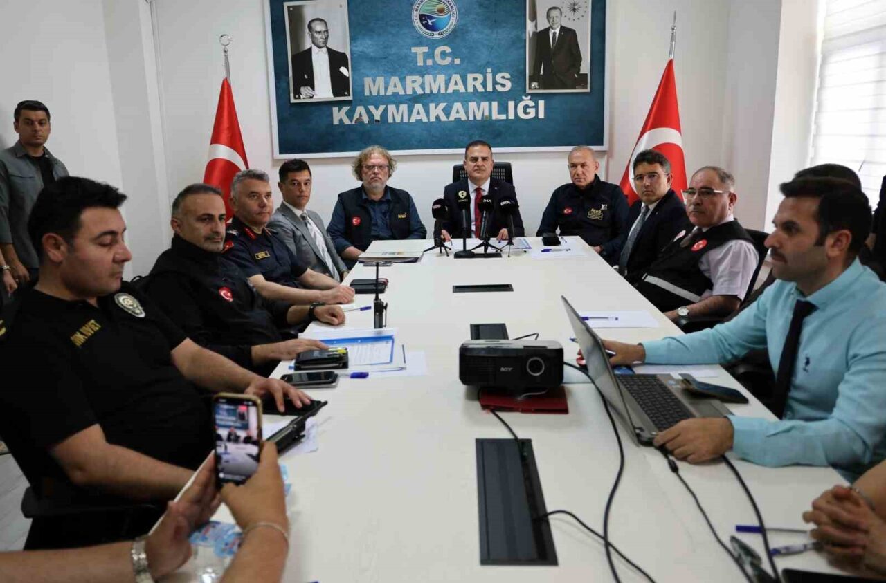 MUĞLA’DA YAŞANAN 5.8 ŞİDDETİNDEKİ DEPREM SONRASI MUĞLA VALİSİ DR. İDRİS AKBIYIK MARMARİS KAYMAKAMLIĞINDA AÇIKLAMA YAPTI