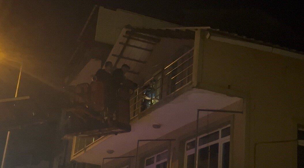 Kocaeli’nin Derince ilçesinde gece saatlerinde bir daireden yükselen müzik sesi mahalleliyi sokağa döktü, polis uzun süre kapıyı çaldı ancak ev sahibine ulaşamayınca devreye itfaiye girdi. Merdivenli araçla balkona çıkan polisler, içeride buldukları ev sahibini dışarıya çıkardı.