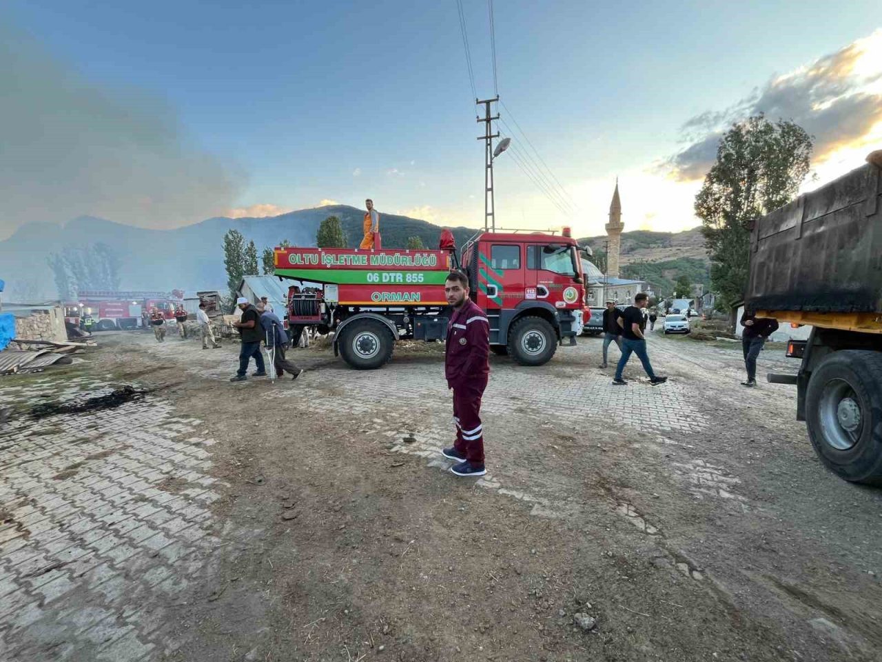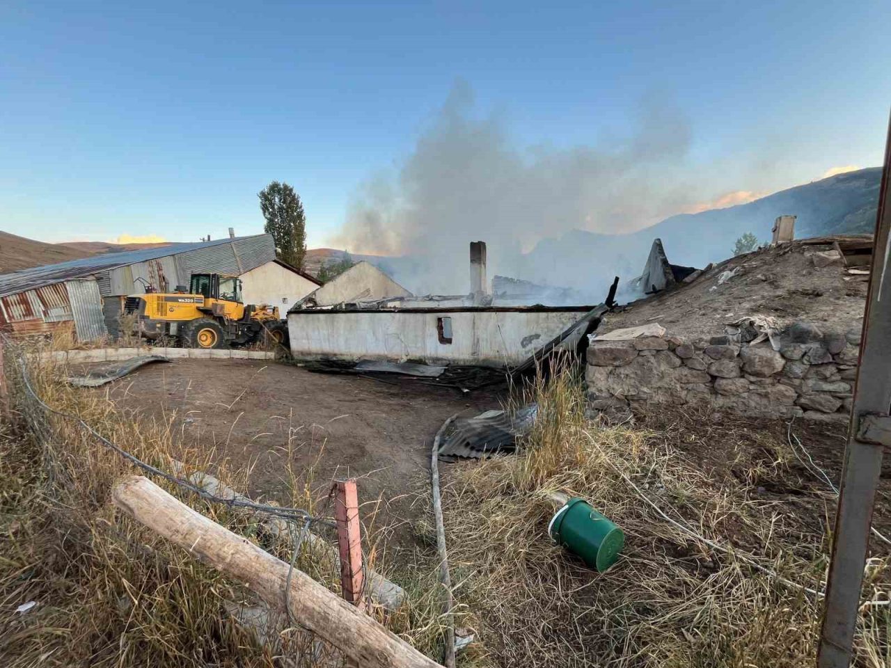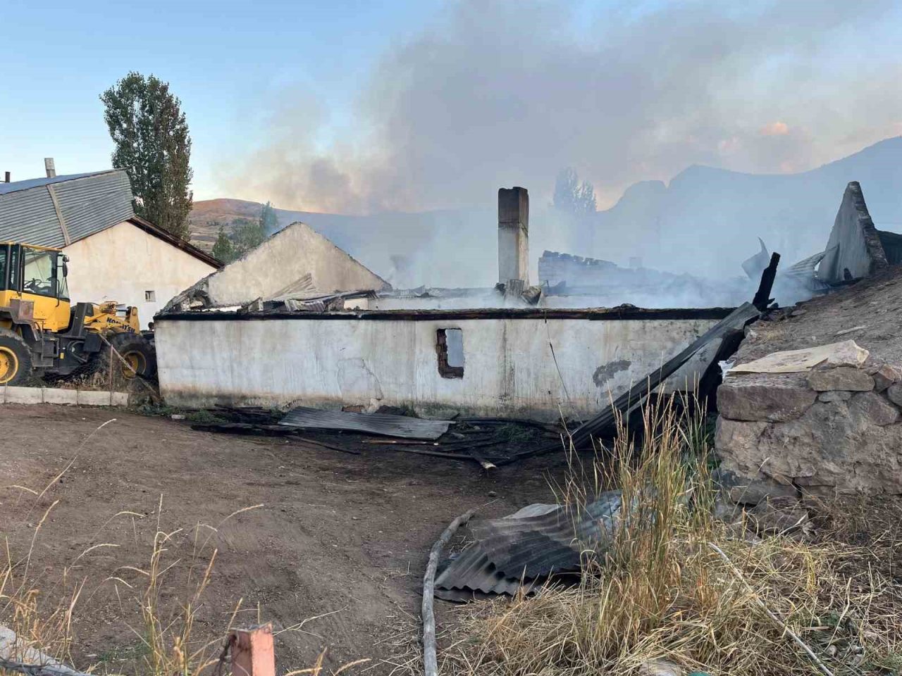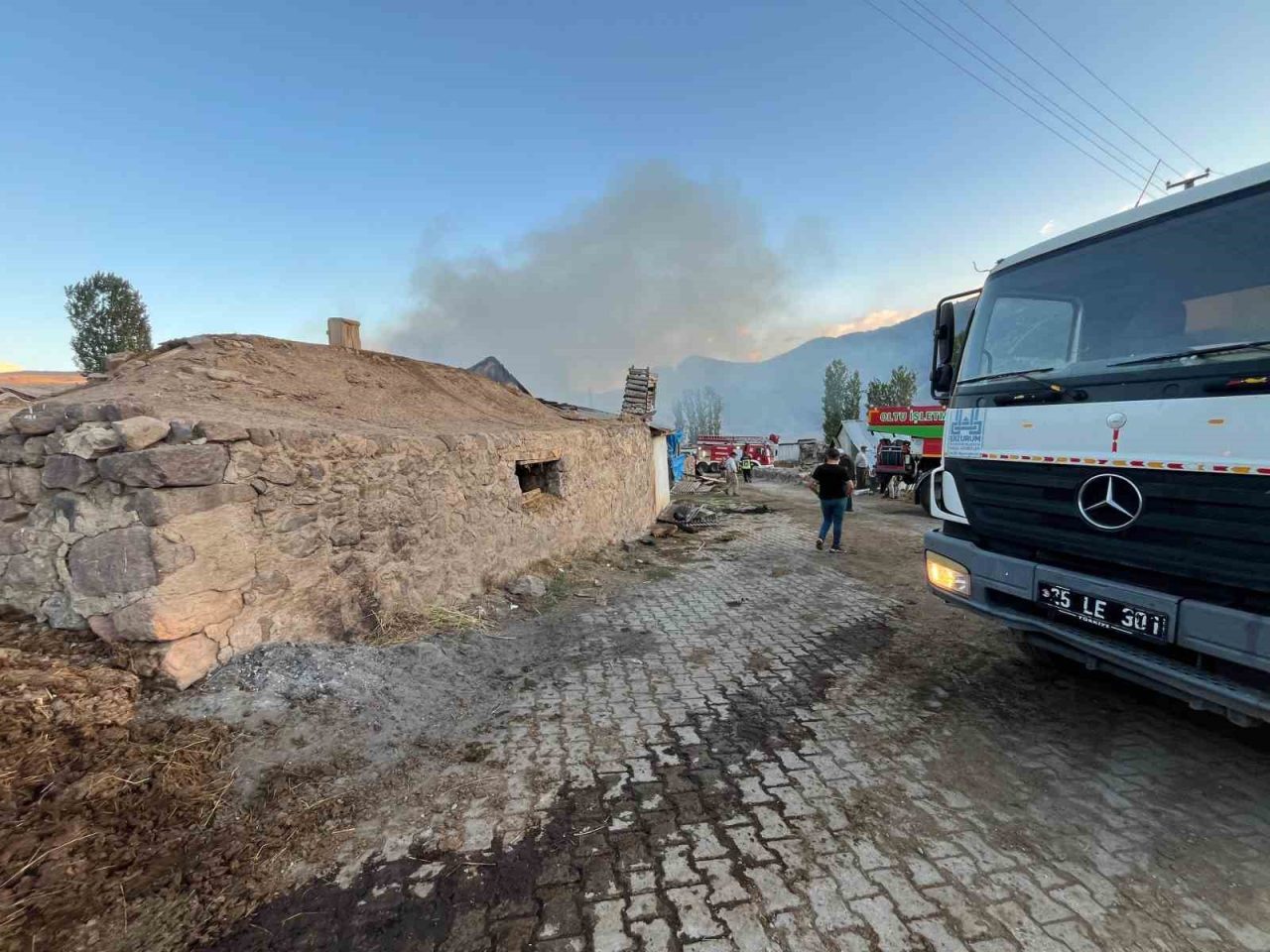 ERZURUM’UN NARMAN İLÇESİNE BAĞLI GÖLLÜ MAHALLESİ’NDE ÇIKAN YANGINDA 3 EV, BİR GARAJ VE OTLAR KÜL OLDU.