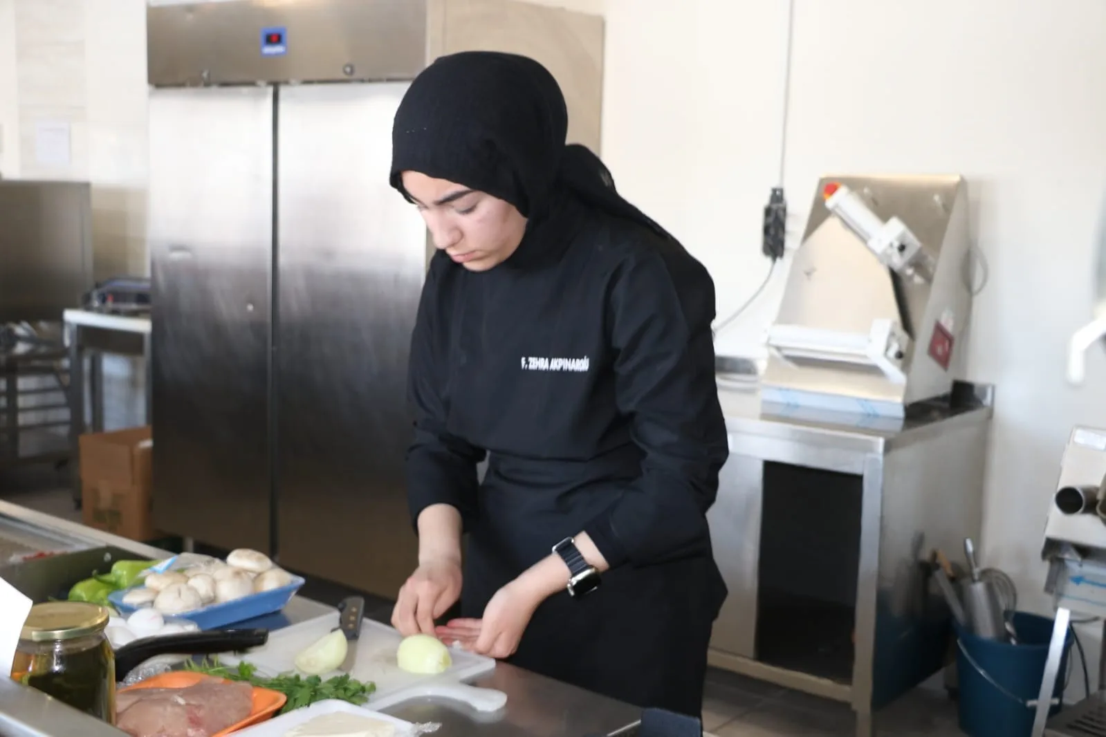 Yarışmaya Erzincan Hürriyet Turizm Mesleki ve Teknik Anadolu Lisesinden katılan 11. Sınıf öğrencisi Büşra Danışman yarımada yapacağı yemeği anlatarak “Siirt ve Sinop bölgesinden esinlenerek mantı yapacağım. Süslenmiş yoğurt eşliğinde, Kemah Cevizi ile servis yapacağım. İç harcını Erzincan Tulum Peynirinden yapacağım” dedi.