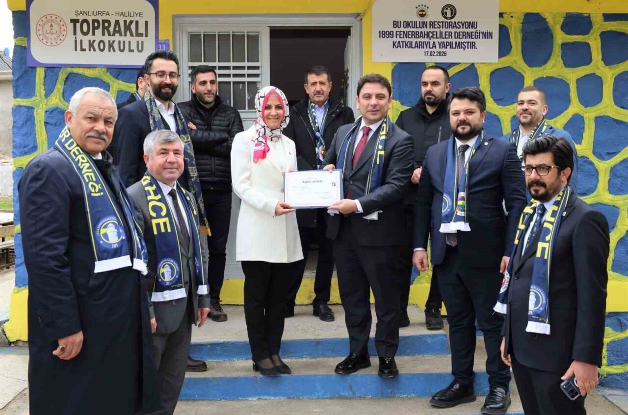 Şanlıurfa’nın Haliliye ilçende, Fenerbahçeliler Derneği tarafından yenilenen okuldaki öğrenciler, ilçe kaymakamı ve yanındaki ziyaretçileri sarı lacivert renklerdeki Fenerbahçe bayraklarla karşıladı.