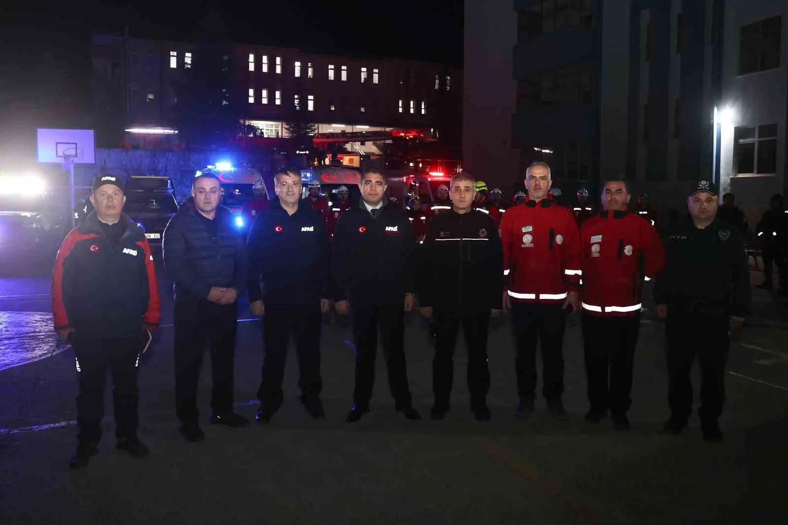 Eğitimlerin ardından, Düzce Valisi Selçuk Aslan’ın katılımıyla deprem anı, tahliye ve yangın tatbikatı yapıldı. Senaryo gereği, Düzce merkez üssü olan 6 büyüklüğünde bir deprem meydana geldi. Depremin hemen ardından AFAD, İtfaiye, UMKE, Sağlık, MEB AKUB ve Emniyet ekipleri olay yerine sevk edildi. Tatbikat kapsamında, depremin etkisiyle okulun merdivenlerinde hasar oluştu ve mutfakta yangın çıktı. Öğrenciler ve öğretmenler kontrollü şekilde tahliye edilirken, ekipler yaralılara müdahale etti.