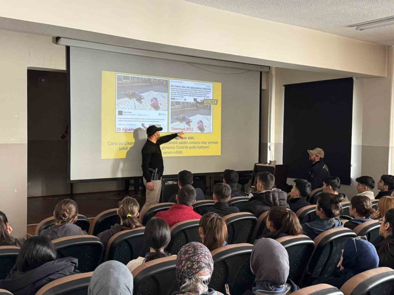 Proje kapsamında, 12. sınıfta öğrenim gören 73 lise öğrencisine terör örgütlerinin gençleri hedef alma yöntemleri, sosyal medya üzerinden yürütülen manipülasyon teknikleri, güvenlik güçlerinin terörle mücadele çalışmaları ve gençlerin karşılaşabilecekleri riskli durumlar karşısında nasıl hareket etmeleri gerektiği konularında bilgilendirmeler yapıldı. Akabinde bilgilendirme yapılan öğrencilere polis teşkilatının daima onların yanında olduğunu hissettirmek ve aramızdaki bağı güçlendirmek adına halı saha turnuvası düzenlendi.