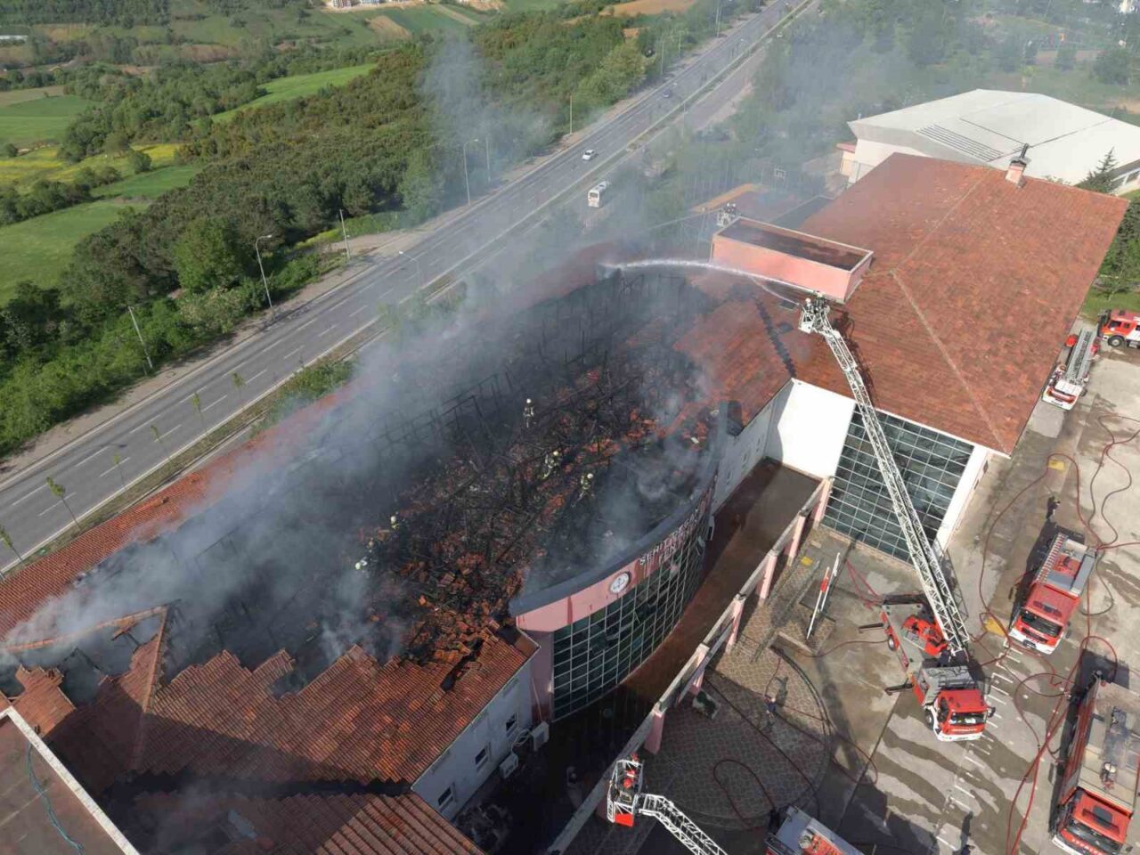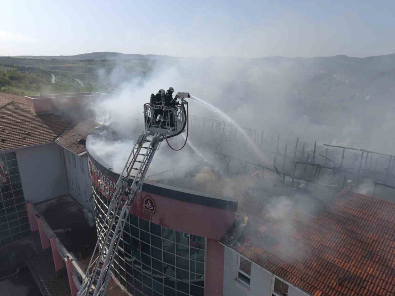 Kocaeli’nin İzmit ilçesinde bir lisenin çatısında çıkan yangın söndürüldü. Çatı kullanılamaz hale gelirken, okul havadan görüntülendi.
