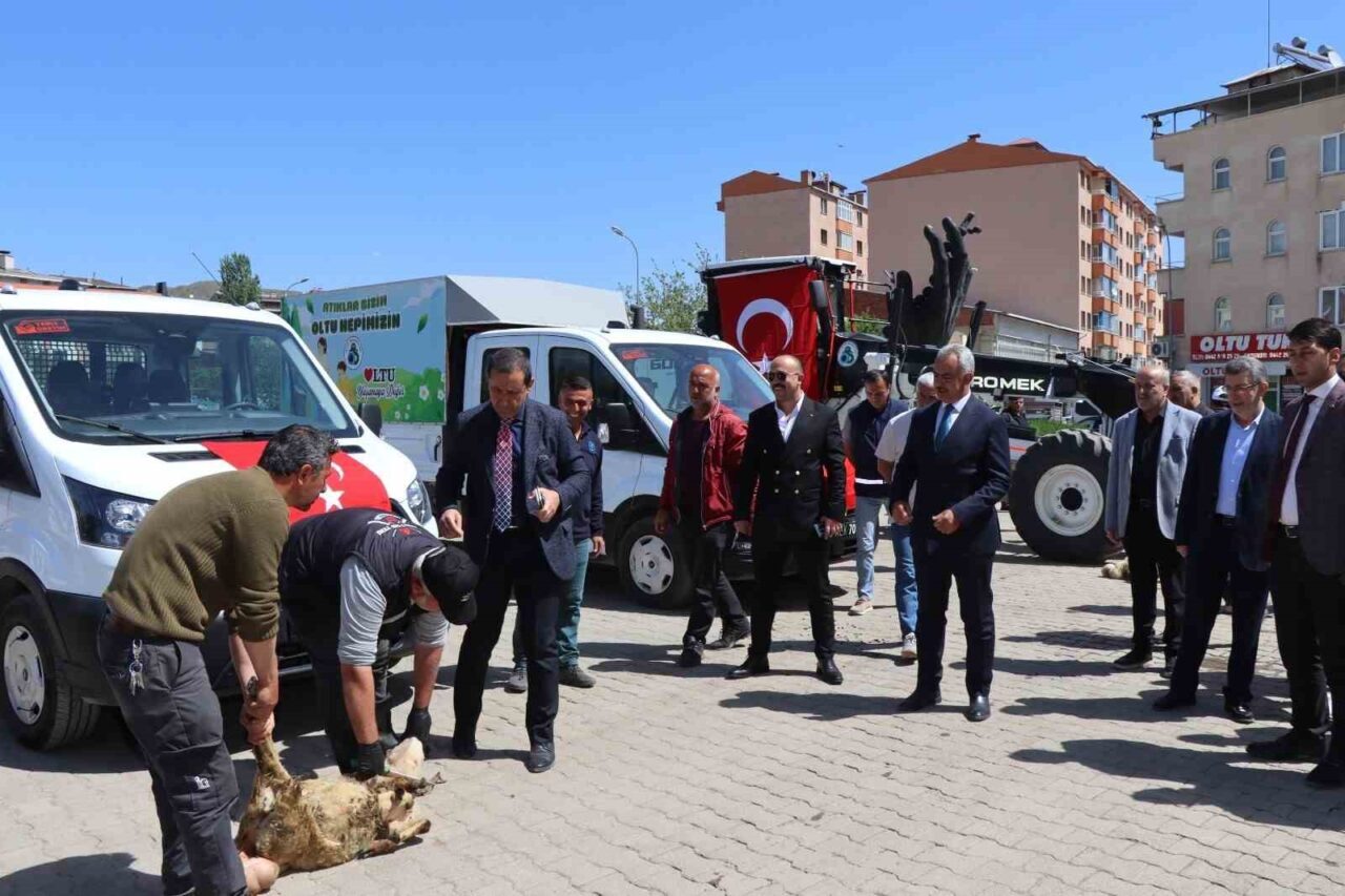 Belediye envanterine katılan 1 greyder, 2 kamyonet ve 1 yol süpürme aracı, Kale Meydanı’nda düzenlenen törenle kamuoyuna tanıtıldı. Törene Oltu Belediye Başkanı Adem Çelebi, belediye başkan yardımcıları, meclis üyeleri ve belediye çalışanları katıldı. Yeni araçların tanıtımı sırasında iki koyun kurban edilerek araçlara kanları sürüldü. Bu sembolik gelenek, yeni araçların ilçeye uğur getirmesi temennisiyle gerçekleştirildi.