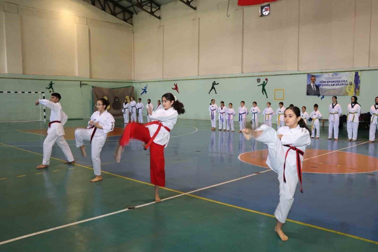 Oltu İlçe Gençlik ve Spor Müdürlüğü Spor Salonu’nda düzenlenen kuşak sınavı, İlçe Gençlik ve Spor Müdürü İbrahim Şimşek’in açılış konuşmasıyla başladı. Sporcular, veliler ve kulüp yönetiminin katılımıyla gerçekleşen program coşkulu anlara sahne oldu. Taekwondo Antrenörü Sıtkı Toksoy ile Yardımcı Antrenör Kübranur Sarıtaç yönetiminde hazırlanan sporcular, sınav kapsamında temel duruş ve tekniklerin uygulanması ile poomse gösterilerini sergiledi. Gösteriler izleyicilerden büyük beğeni topladı. Beyaz kuşak sporcuların ilk sınavlarını vermesi nedeniyle heyecanlı oldukları gözlemlenirken, yaklaşık 50 sporcunun katıldığı sınavda başarılı olan sporcular bir üst kuşağa terfi etti. Programda kısa bir müsabaka örneği de sunularak izleyenlere taekwondonun mücadele yönü tanıtıldı. Sınav programı, bayrak temalı kule figürleriyle gerçekleştirilen final gösterisiyle taçlandırıldı. Etkinlik sonunda Erzurum Gençlik ve Spor İl Müdürlüğü tarafından sporculara katılım belgeleri verildi.