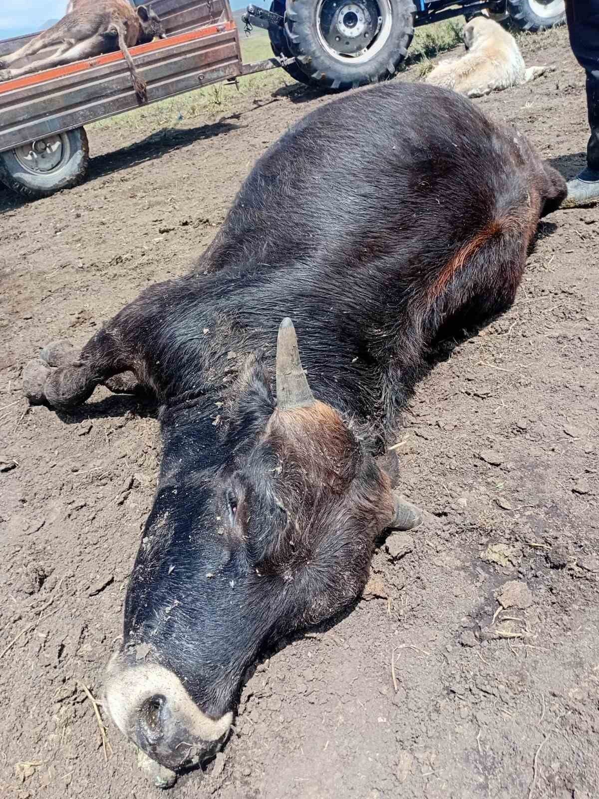 OLTU’DA YILDIRIM DÜŞMESİ SONUCU 4 BÜYÜKBAŞ HAYVAN TELEF OLDU