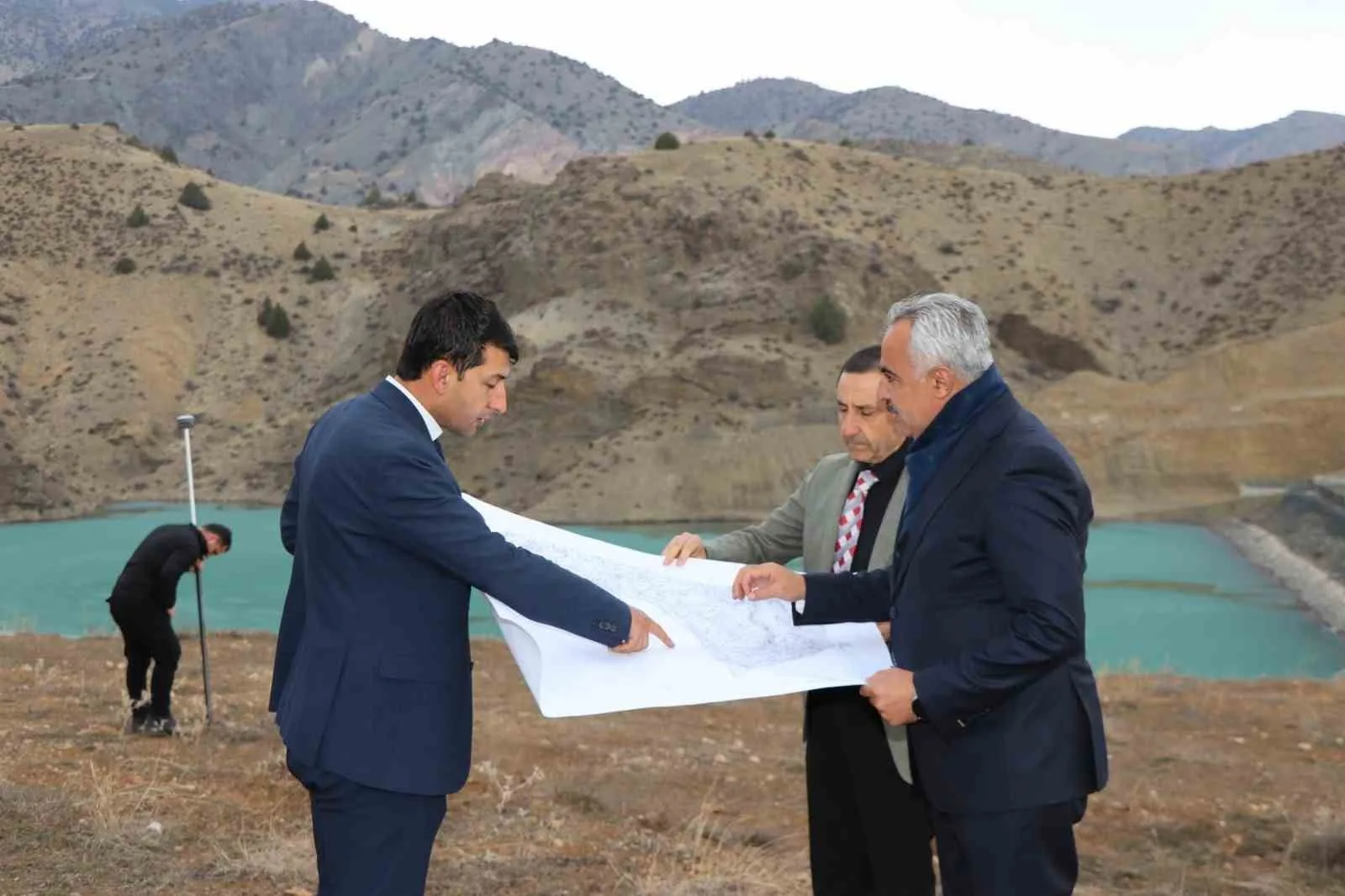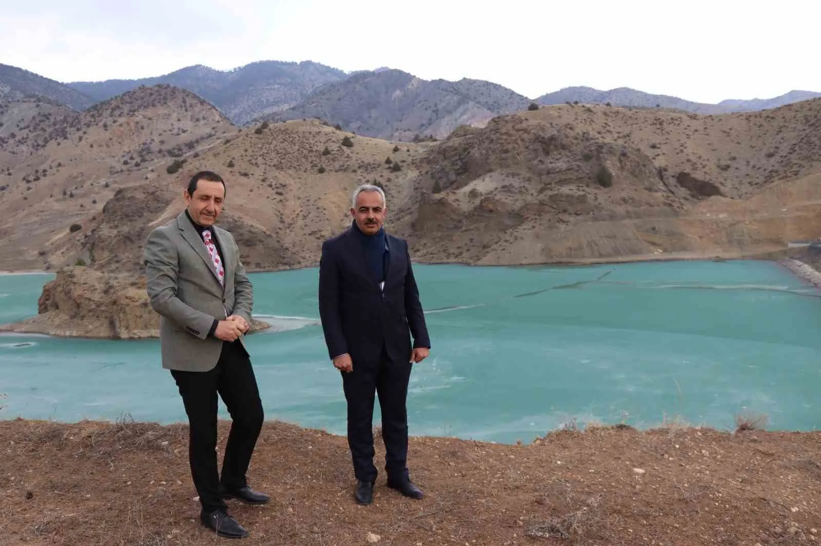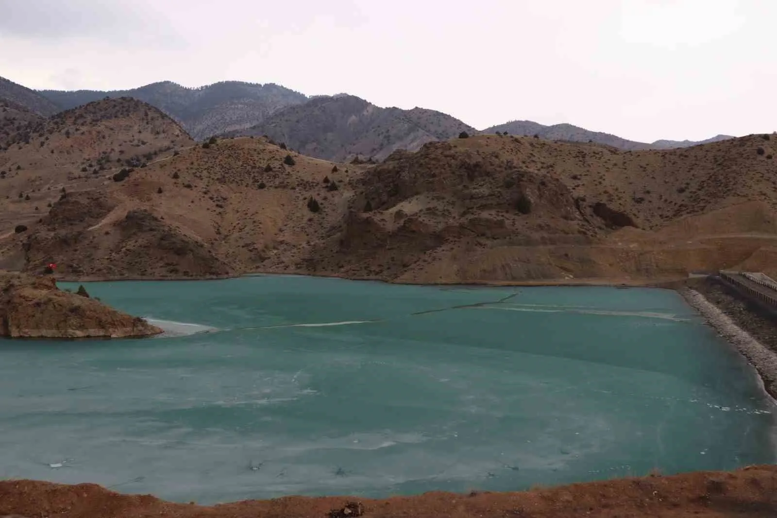 ERZURUM’UN OLTU İLÇESİ ŞENDURAK MAHALLESİ’NDE DSİ TARAFINDAN İNŞA EDİLEN SULAMA GÖLETİ, TURKUAZ RENGİYLE MUAZZAM BİR DOĞA HARİKASI HALİNE DÖNÜŞTÜ.