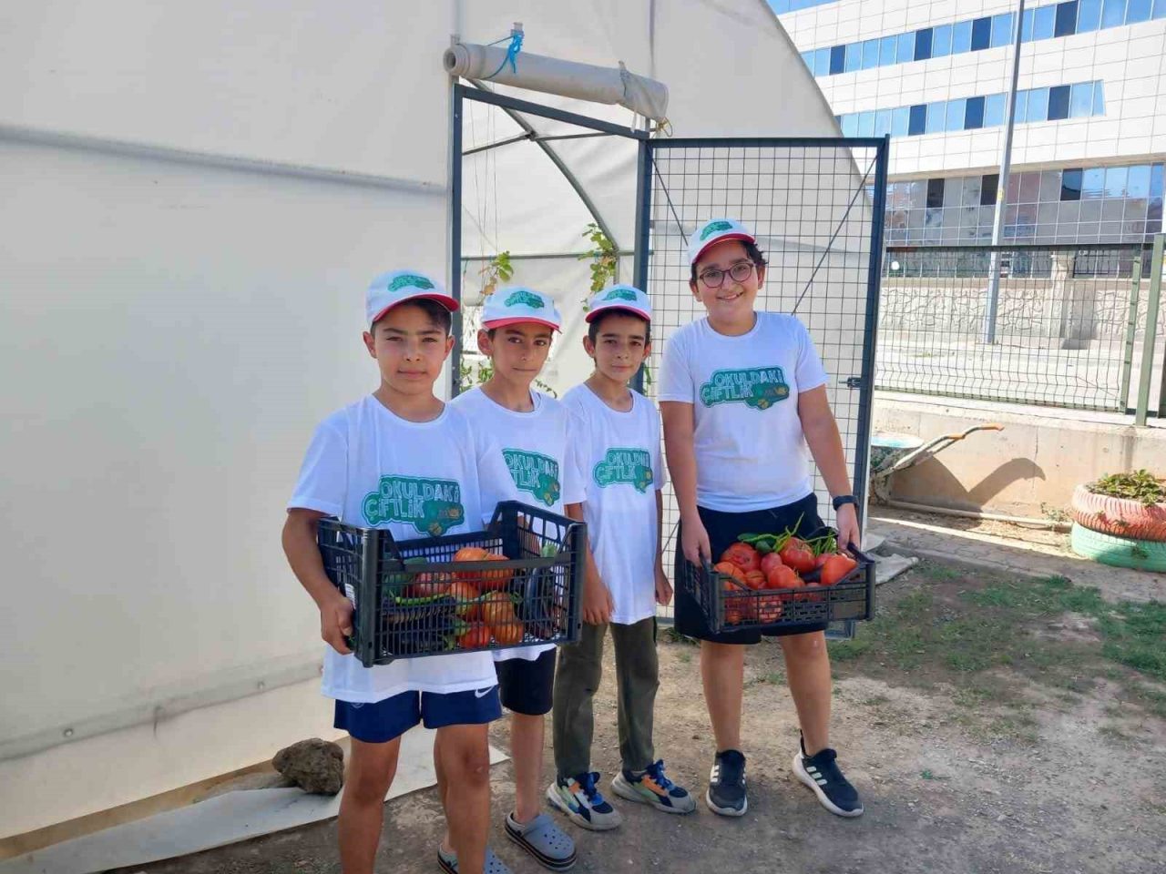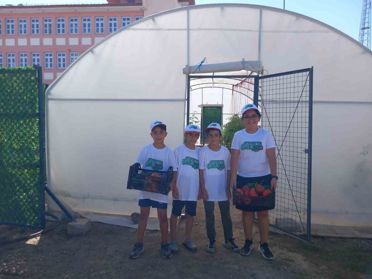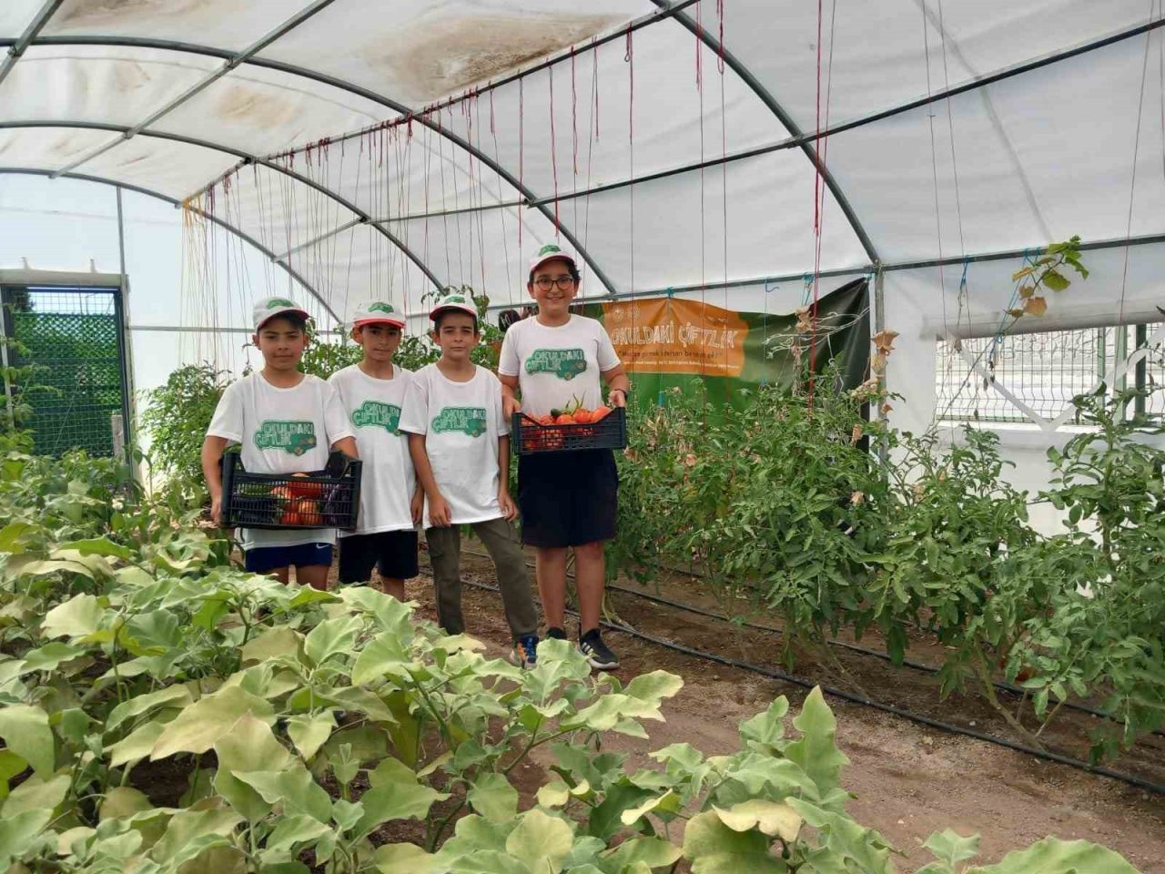 Domates, biber, patlıcan, karnabahar gibi mevsimlik sebze yetiştiren ortaokullu öğrenciler hem çiftçilik mesleğinin inceliklerini öğreniyor hem de sebzeleri dalından koparıp yemenin zevkini yaşıyorlar.