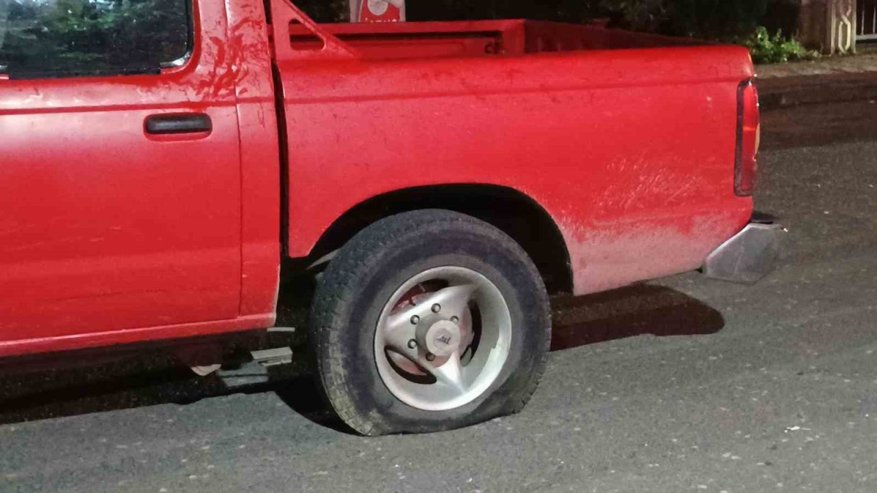 KAMYONETİN LASTİKLERİ PATLATILDI