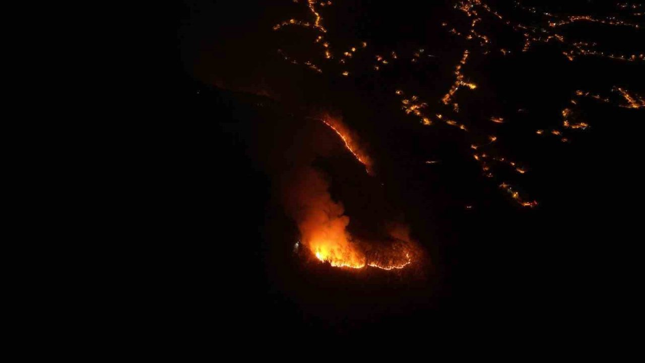 EKİPLER, YANGINA HEM KARADAN HEM DE EĞİMLİ ARAZİ ŞARTLARI NEDENİYLE ELLE MÜDAHALE EDEREK SÖNDÜRME ÇALIŞMALARINI SÜRDÜRÜYOR.