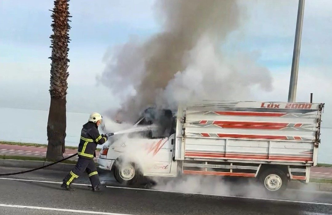 Olay, ilçenin Fevzi Çakmak Mahallesi sahil yolu üzerinde meydana geldi. Edinilen bilgiye göre, B.T.’nin (26) kullandığı 44 LH 638 plakalı kamyonet, henüz belirlenemeyen bir nedenle yanmaya başladı. Motor kısmından dumanların çıktığını fark eden sürücü kamyoneti yol kenarına çekerek, araçtan indi. Bu esnada alevler kısa sürede kamyonetin ön kısmını sardı. İhbar üzerine bölgeye itfaiye ve polis ekipleri sevk edildi. İtfaiye ekiplerinin çalışması sonucu yangın söndürülürken, kamyonet ise kullanılmaz hale geldi.