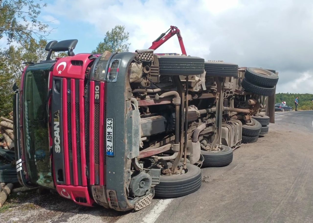 Kaza, Çamalan Mahallesi Ünye-Akkuş-Niksar yolu üzerinde meydana geldi. Edinilen bilgiye göre, Metin E.’nin (42) kullandığı 52 ABM 343 plakalı kamyon, seyir halindeyken virajı döndüğü sırada makasının kırılması sonucu, kasasında bulunan 21 ton tomrukla birlikte devrildi. Kazayı gören çevredekiler 112 Acil Çağrı Merkezi’ne ihbarda bulundu. Olay yerine kısa sürede sağlık ve polis ekipleri sevk edildi.