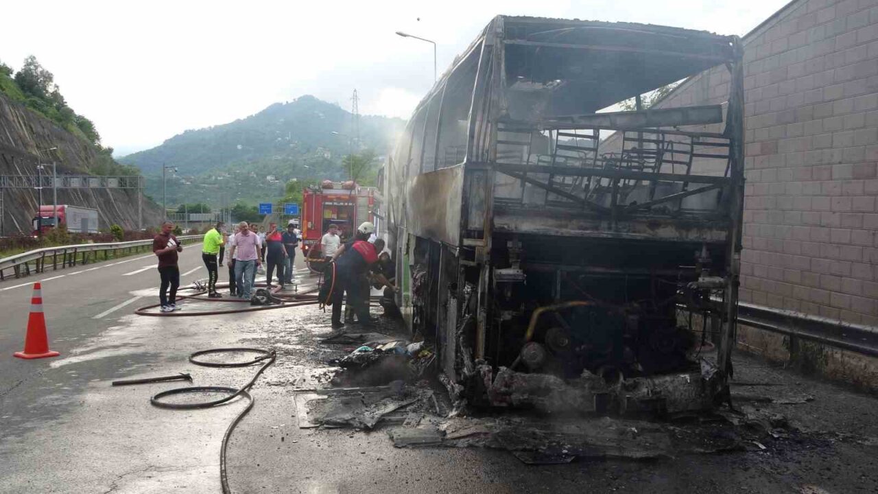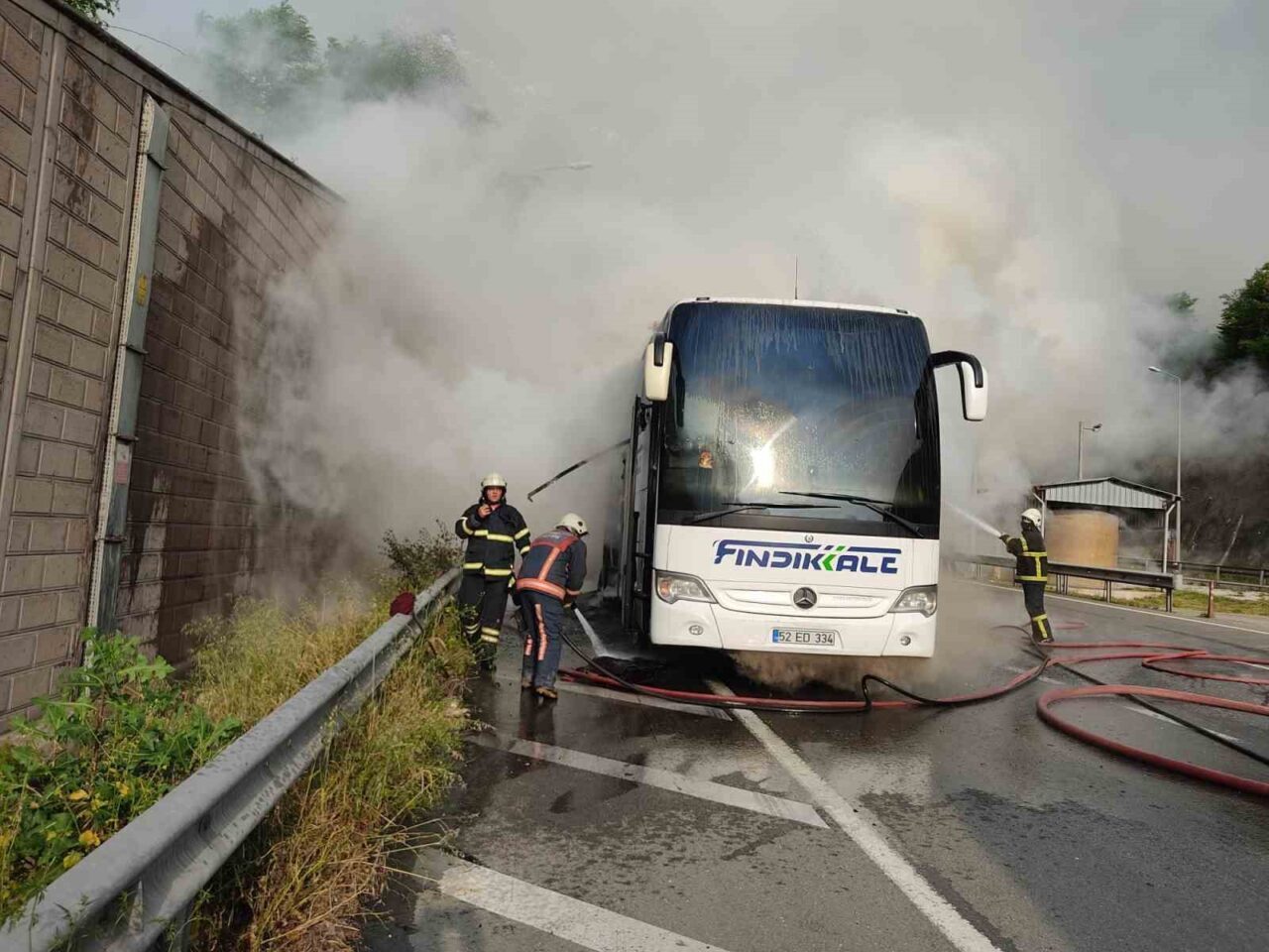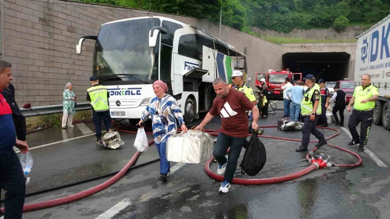 Ordu’dan İstanbul’a giden ve yolda arızalandıktan sonra tamiratı yapılan otobüs, sanayiden çıktıktan 15 dakika sonra tünel içerisinde alev aldı. 37 yolcu başka bir otobüse tahliye edildi.