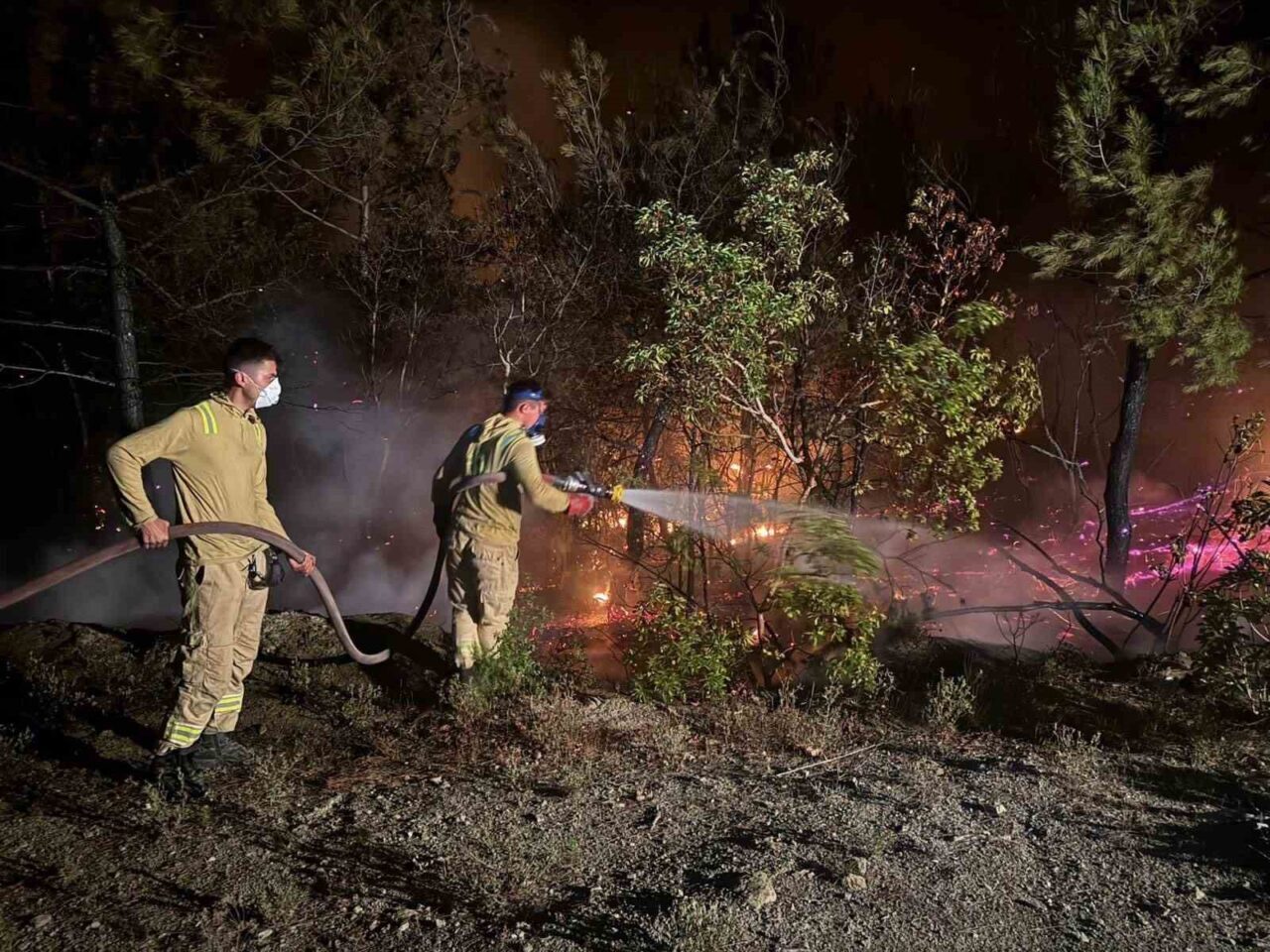 Yangına ilk gün 5 uçak ve 8 helikopterle havadan, çok sayıda arazöz ve personelle de karadan müdahale edildi. Gece boyunca karadan devam eden çalışmalar, günün ilk ışıklarıyla birlikte hava araçlarının da katılımıyla yeniden hız kazandı.
