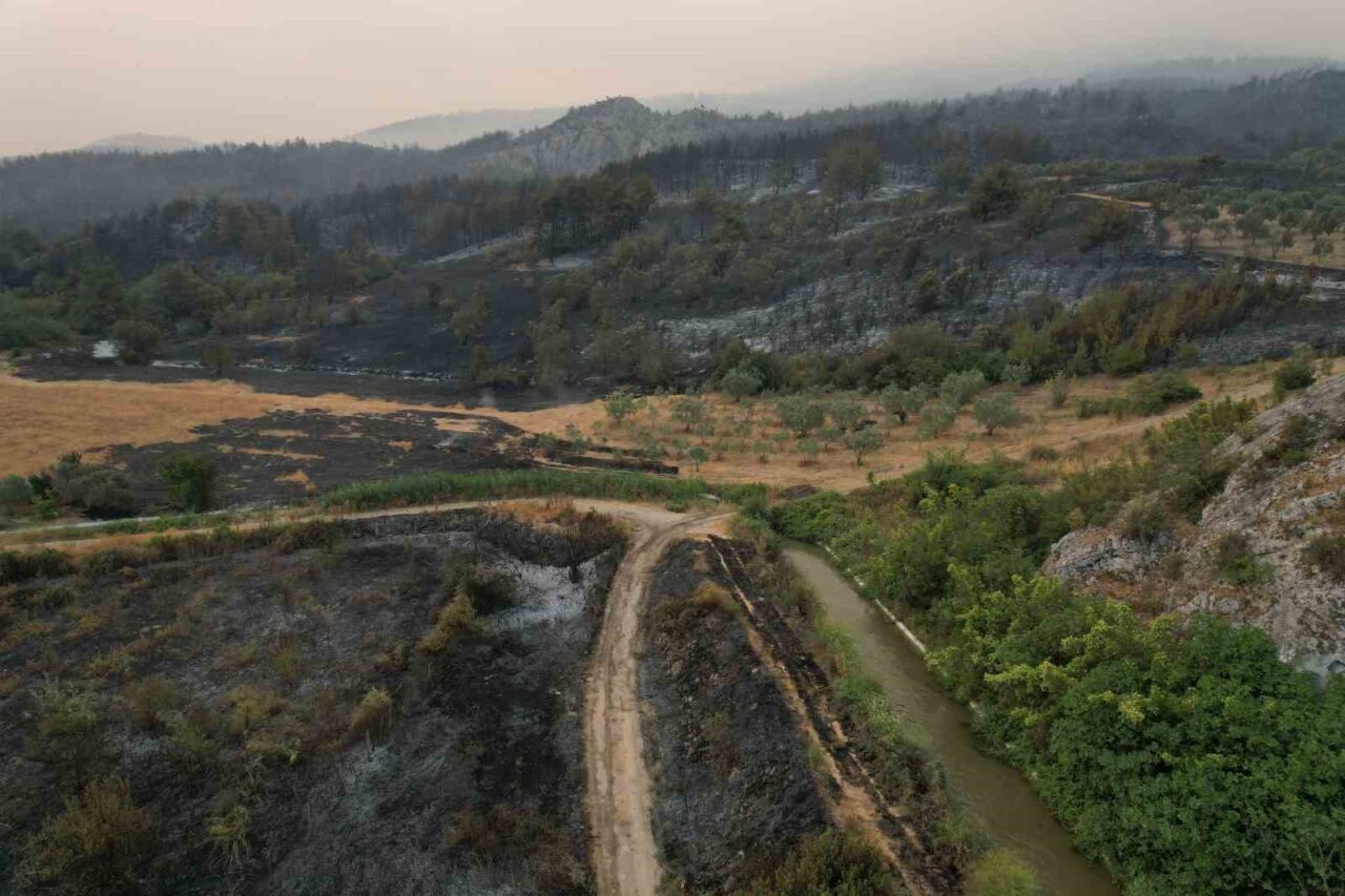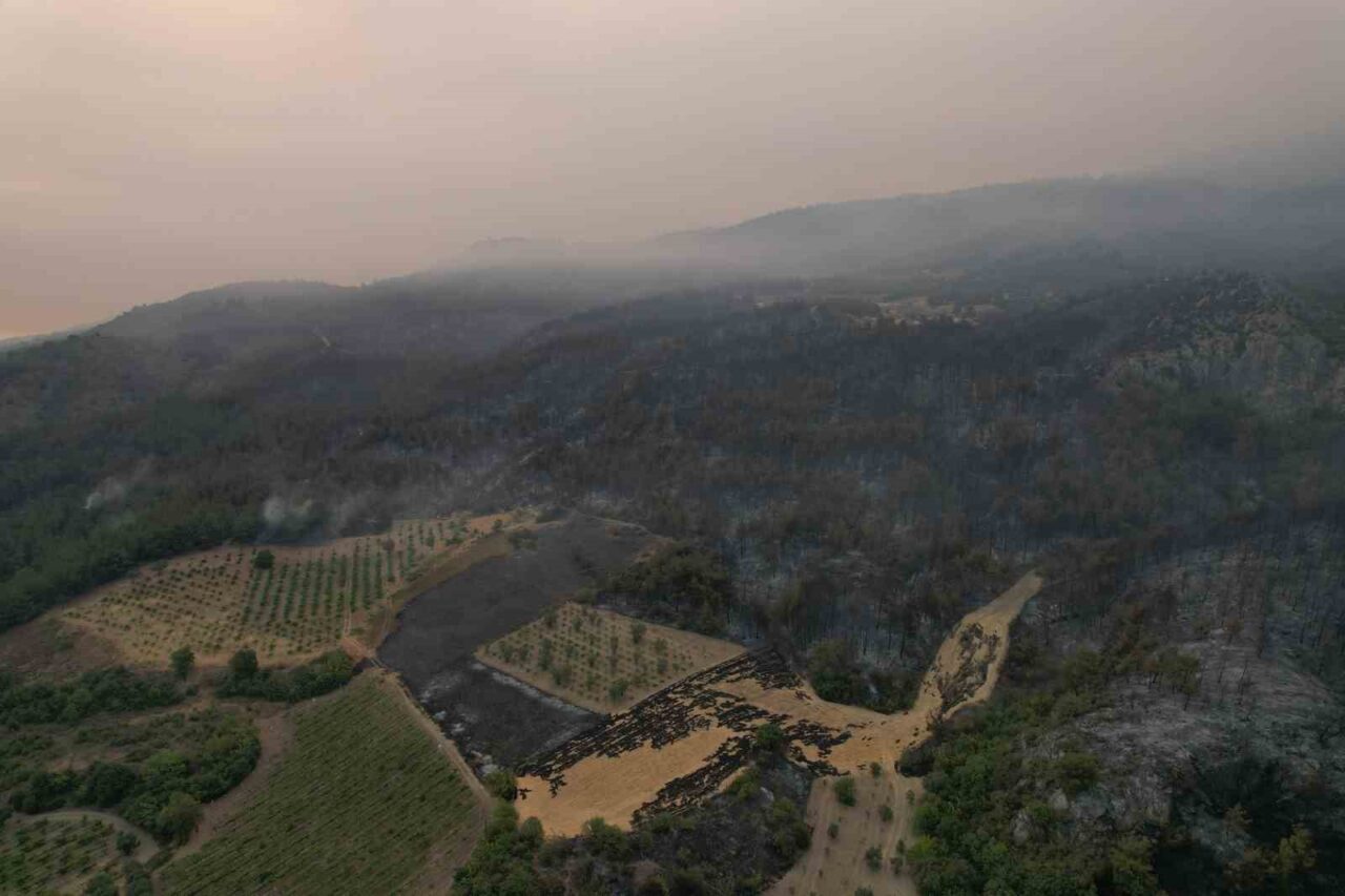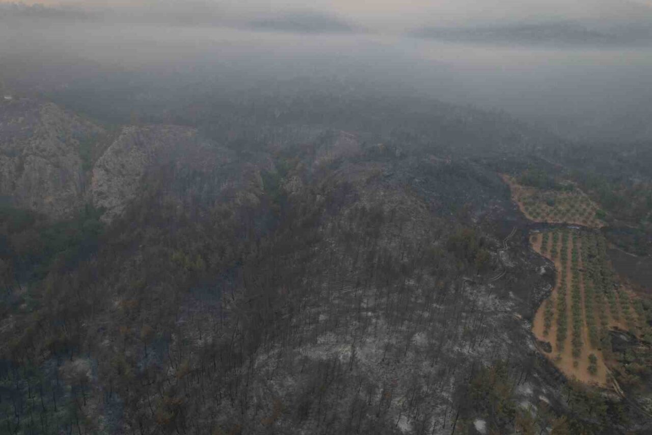 Yangının hasarı gün yüzüne çıkmaya başlarken, bazı yanan bölgeler dron ile havadan da görüntülendi.