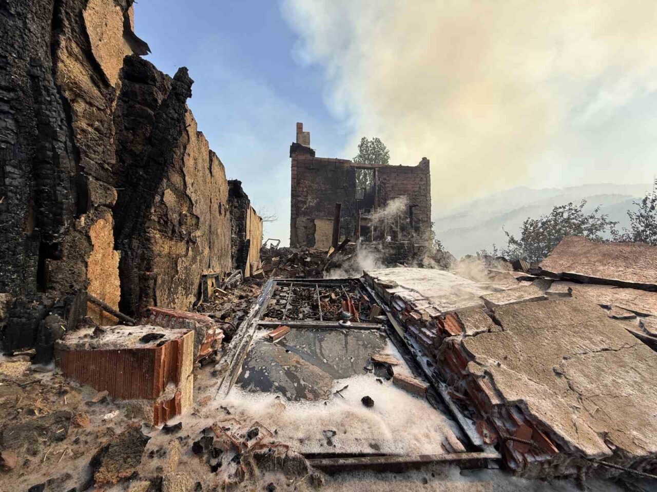 Yangın neticesince harabeye dönen yapılar, havadan da görüntülenirken, evlerden birinde kaldığını aktaran Hüseyin Özalp (60), “Söyleyecek bir şey yok Allah’ın takdiri. Evimiz ve mallarımız yandı ama çok şükür can kaybı yok. Ben bir saat önce evden çıkmıştım, rahatsızdım doktora gittim. ’Yangın var’ dediler, geri geldik. İki katlı evim, ahır ve samanlığımdan geriye kül kaldı. Hepsi yandı. 30 yıl yaşadım, burada annem ile kardeşim kalıyor. Benim evimle birlikte 3 tane ev yandı, 3 tane de kullanılmayan ev yanmış. Kurtarılan hiçbir şey yok, ev komple yandı. Su motorlarım, 15-16 tane lastiğim ve buğdaylar yandı” dedi.