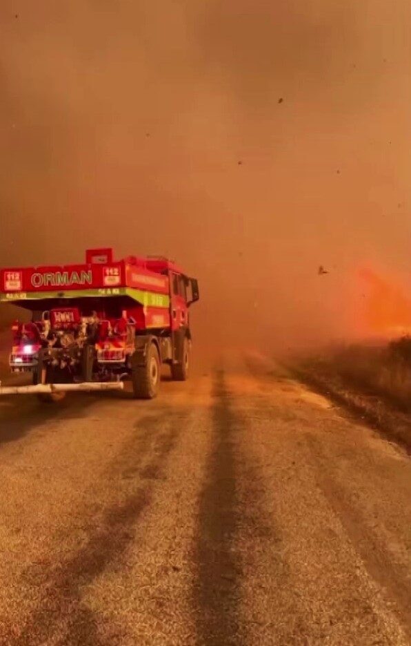 SAKARYA’NIN GEYVE İLÇESİNDE ÇIKAN VE RÜZGARIN ETKİSİYLE BİLECİK SINIRLARINA DA SIÇRAYAN ORMAN YANGININA DAİR EN ÇARPICI GÖRÜNTÜLER ORTAYA ÇIKTI. YANGININ KALBİNE GİREN KAMERALARA, SADECE ALEVLER DEĞİL, ADETA ATEŞ ÇEMBERİ İÇİNDE CANLA BAŞLA ÇALIŞAN KAHRAMANLAR DA YANSIDI.