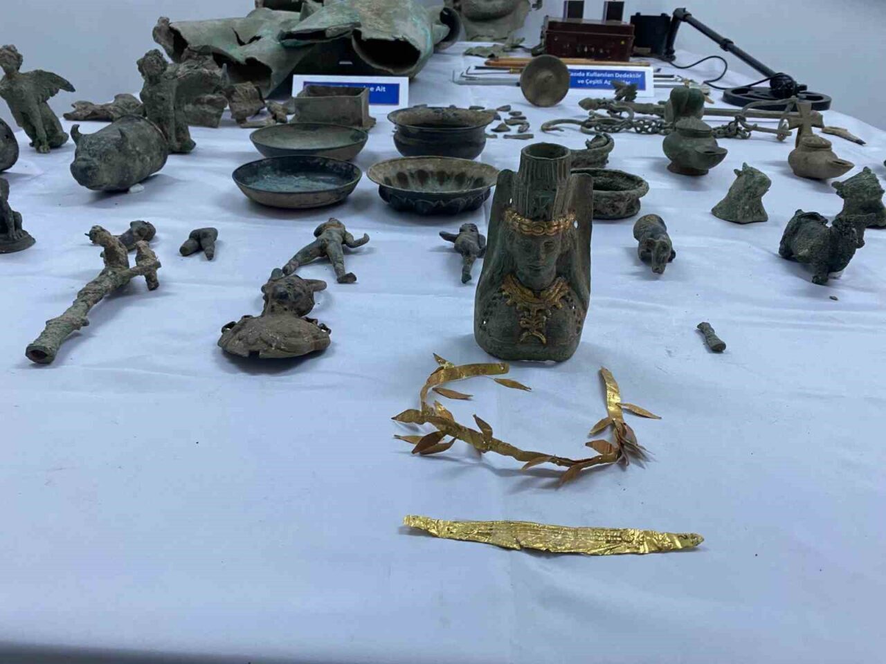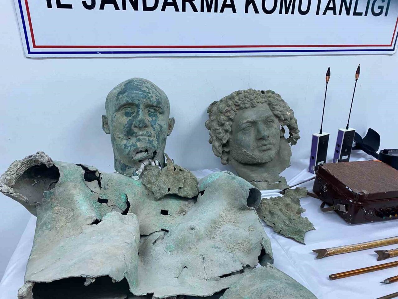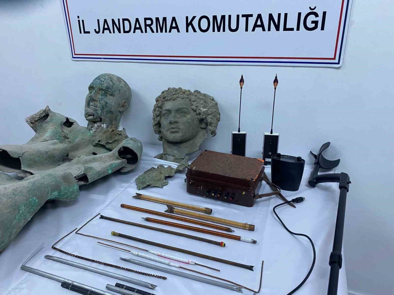 Belirlenen adreslere yönelik Bayburt ve Gümüşhane’de gerçekleştirilen eş zamanlı operasyonlarda, şüpheliler U.Ç., E.Ç., E.Y., İ.Ç. ve T.A.’ya ait evlerde ve araçlarda yapılan aramalarda, 156 adet heykel, heykelcik ve çeşitli objeler ile tarihi eser aramada kullanılan dedektörler ele geçirildi.