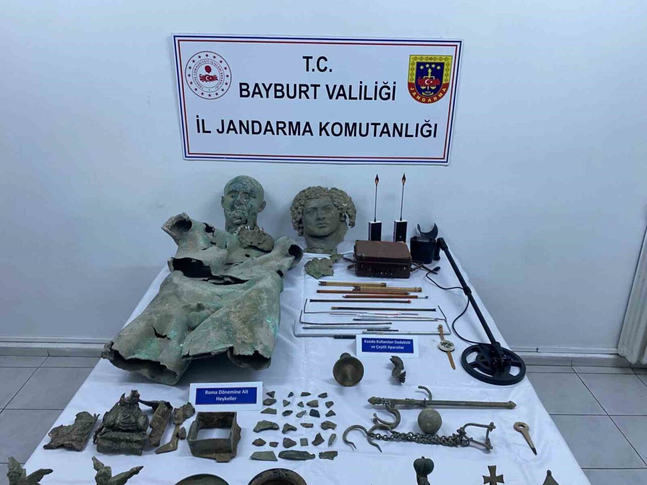 Bayburt İl Jandarma Komutanlığı tarafından yürütülen istihbari çalışmalar neticesinde, izinsiz kazı sonucu elde edilen tarihi eserlerin yasa dışı şekilde ticaretinin yapıldığı tespit edildi. Soruşturma kapsamında şüphelilerin kimlikleri ve adresleri belirlendi.