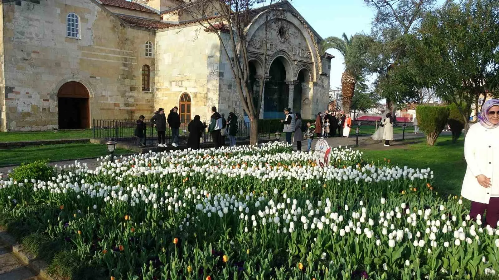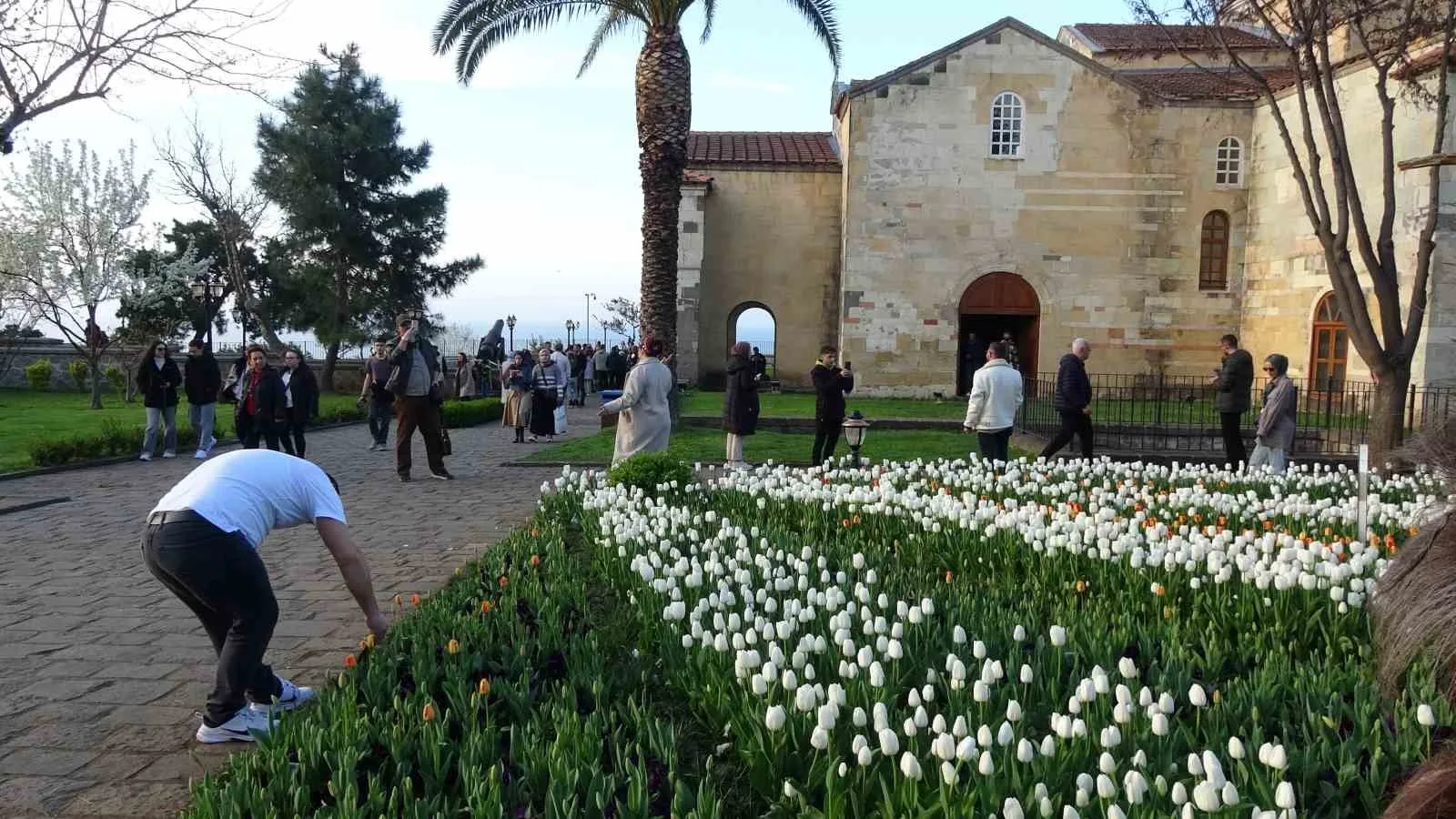 Trabzon’da 2013 yılında müzeden camiye dönüştürülerek ibadete açılan Ayasofya Camii bahçesindeki çiçeklerle güzel bir görüntü oluştururken ziyaretçiler tarafından oldukça beğenildi.