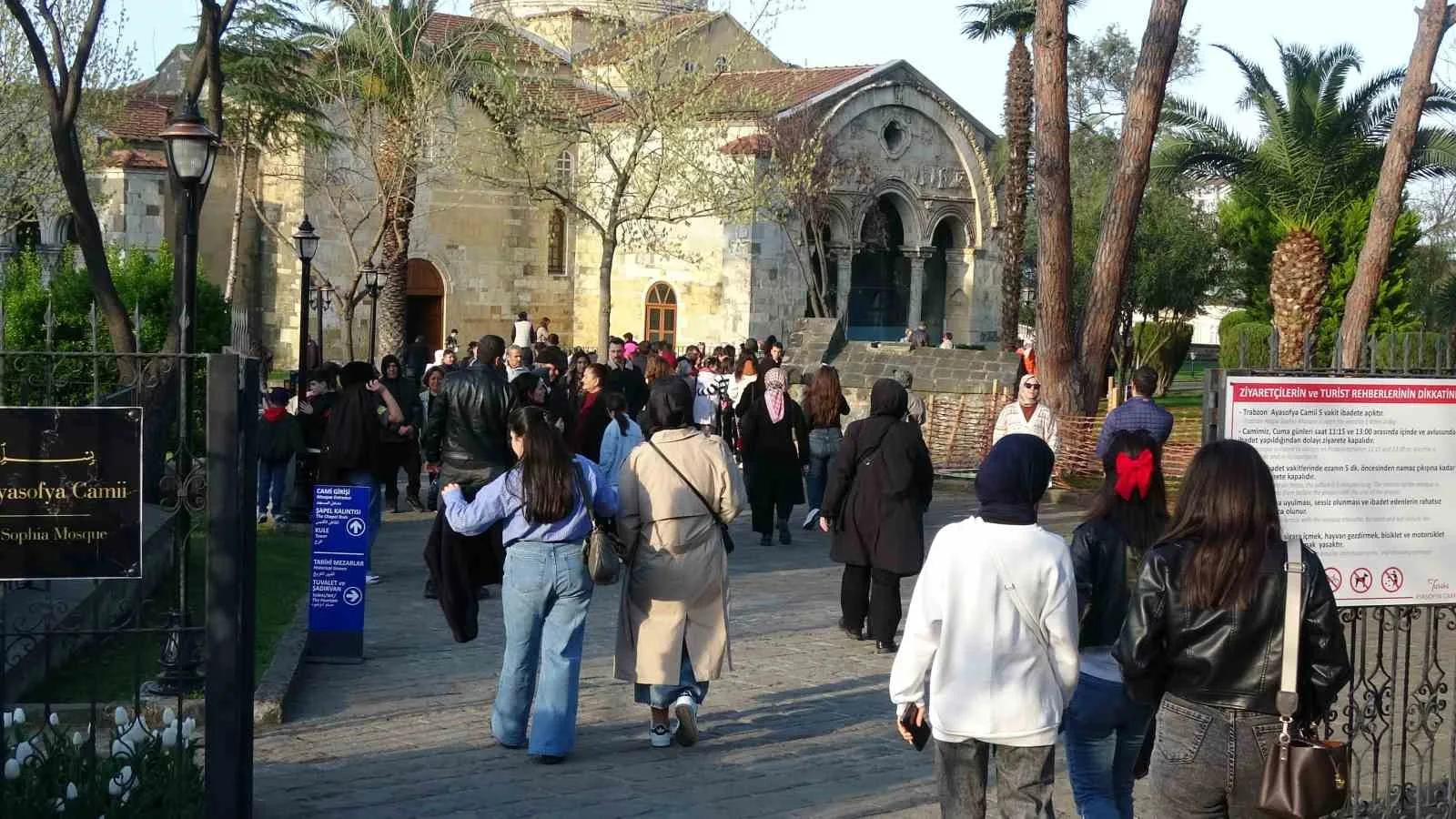 YURDUN ÇEŞİTLİ İLLERİNDEN GELENLERİN YANI SIRA ARAP TURİSTLERİN DE İLGİ GÖSTERDİĞİ AYASOFYA CAMİİ’NE RAMAZAN BAYRAMI DOLAYISIYLA YOĞUN BİR ZİYARETÇİ AKINI YAŞANIYOR.