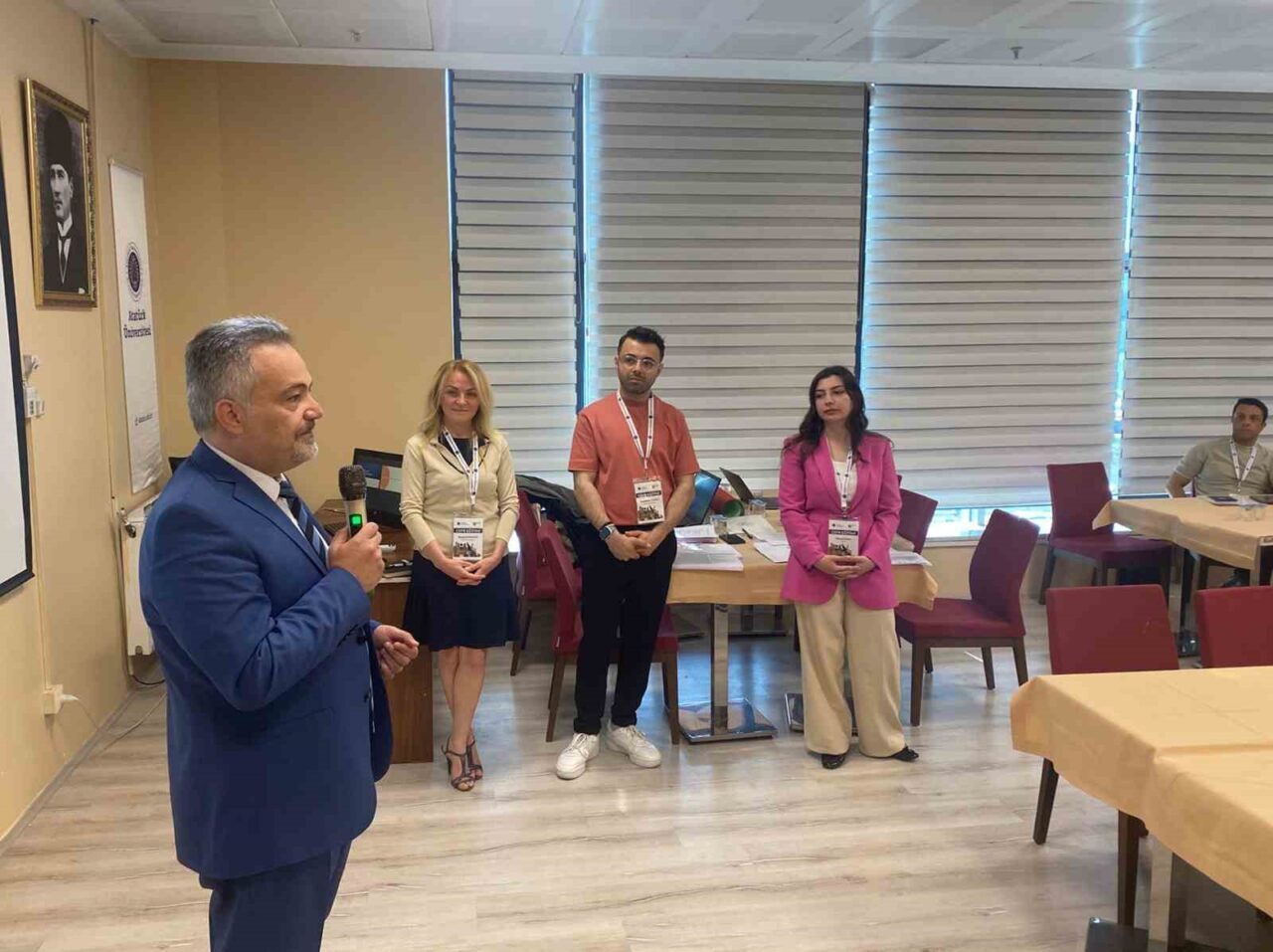 Atatürk Üniversitesi Uluslararası Dil Sınavları Koordinatörlüğünün yürütücülüğünde gerçekleştirilen eğitim toplantısına; ÖSYM Yabancı Dil Sınavları Daire Başkanı Dr. Nida Kırömeroğlu, Atatürk Üniversitesi Rektör Yardımcısı Prof. Dr. Bülent Çavuşoğlu, Uluslararası Dil Sınavları Koordinatörü Öğr. Gör. Cengizhan Akdağ ile birlikte akademisyenler ve farklı üniversitelerden temsilciler katıldı.